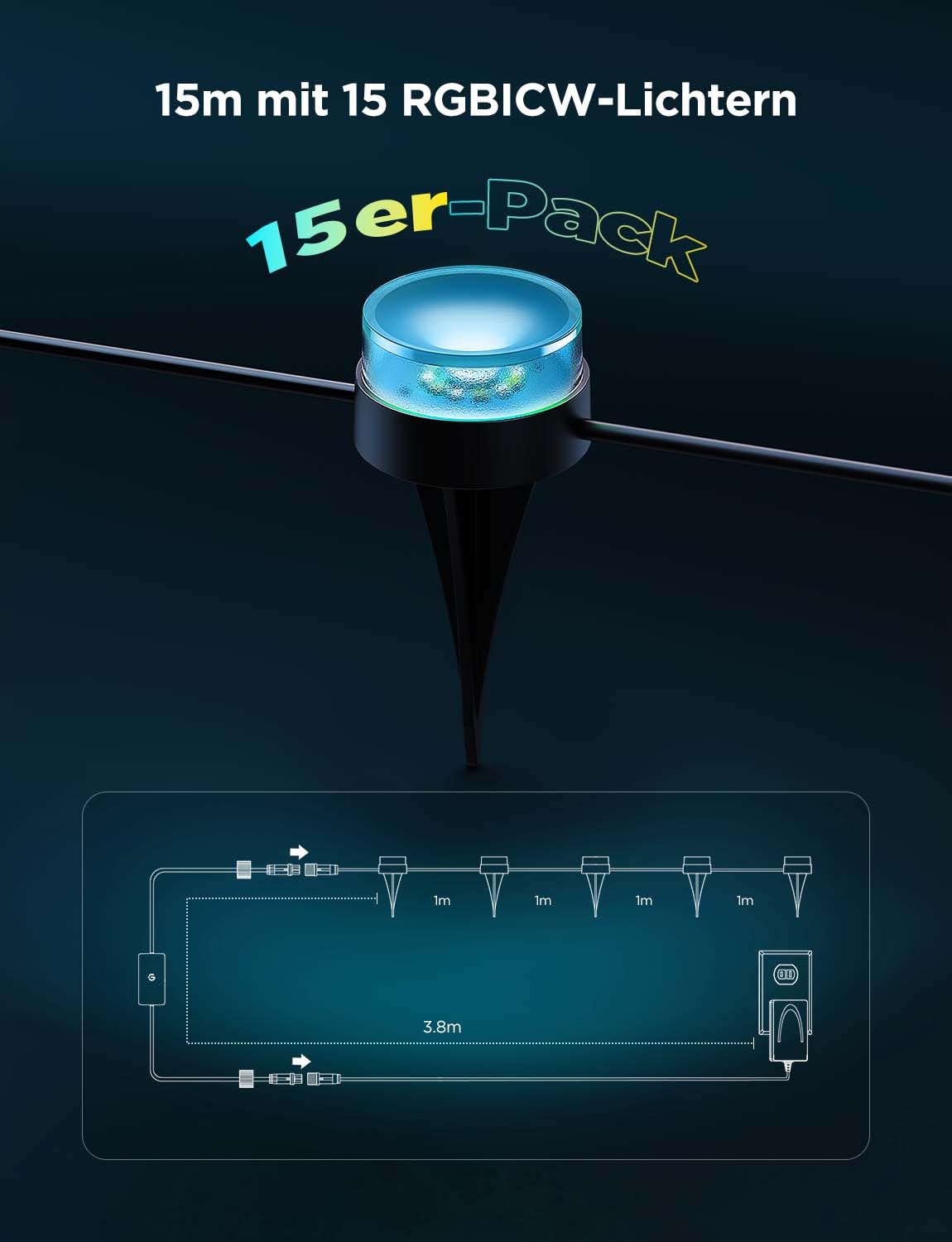 Govee Bodenleuchten RGBIC WW Aussen – 15er-Pack, 15m Kabel