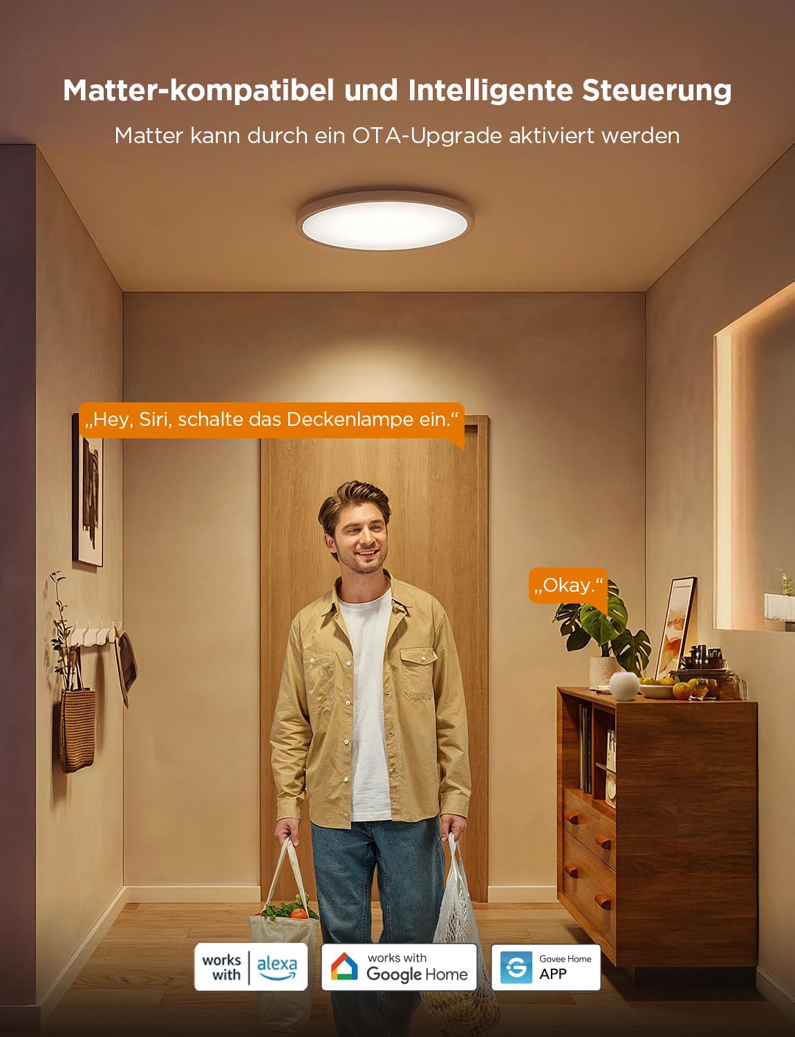 Verwandeln Sie Ihr Zuhause mit der Govee Smart Deckenleuchte in eine Oase des Lichts. Diese intelligente Lampe kombiniert modernes Design mit fortschrittlicher Technologie für eine vollständig personalisierte Beleuchtung, die sich jeder Stimmung und jedem Anlass anpasst.