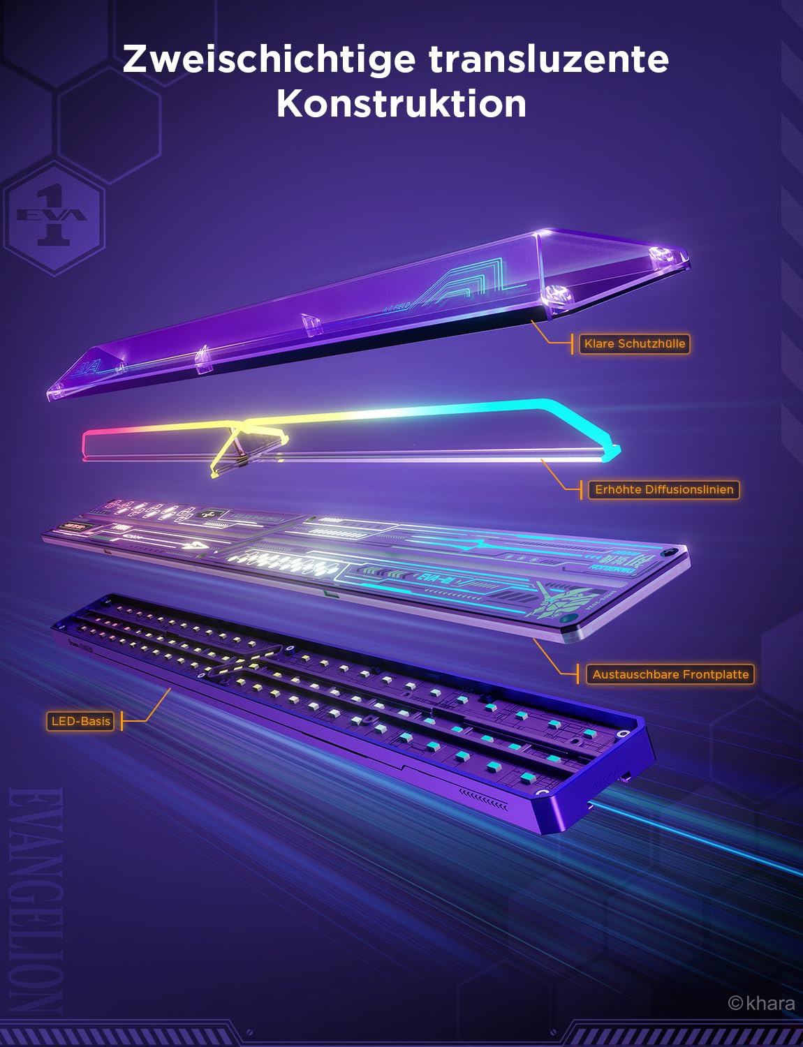 Sie wurde in offizieller Kooperation mit Evangelion entworfen und ist vom Design der EVA-Einheit 01 inspiriert, inklusive des lila-grünen Farbschemas. Zudem bietet sie 8 exklusive, auf den Anime zugeschnittene RGBIC-Lichtmodi, die ikonische Kampfszenen und Momente nachbilden.