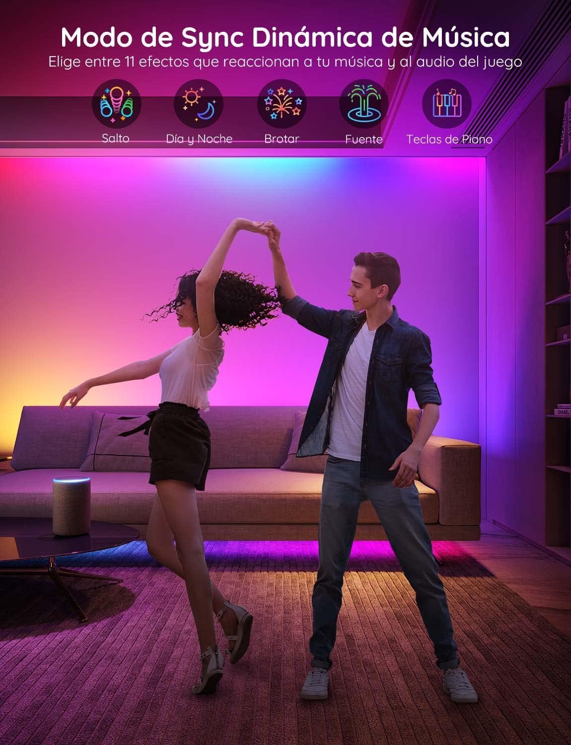 Schaffen Sie mit der einzigartigen RGBIC-Technologie eine unvergleichliche Atmosphäre. Anders als bei herkömmlichen LED-Bändern erzeugen Sie fliessende Farbverläufe und lebendige Muster über die gesamten 30 Meter. Gestalten Sie Ihr Zuhause für Partys, gemütliche Abende oder Feiertage ganz individuell und beeindrucken Sie Ihre Gäste.