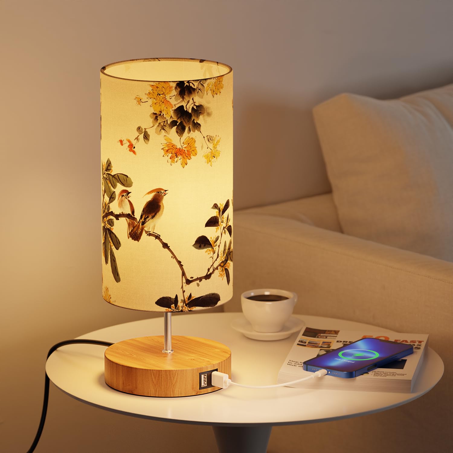 - Dekorativer Stoffschirm: Der Lampenschirm ist aus hochwertigem Stoff gefertigt und mit einem eleganten Vogelmuster bedruckt, das für eine sanfte und augenschonende Lichtverteilung sorgt.
