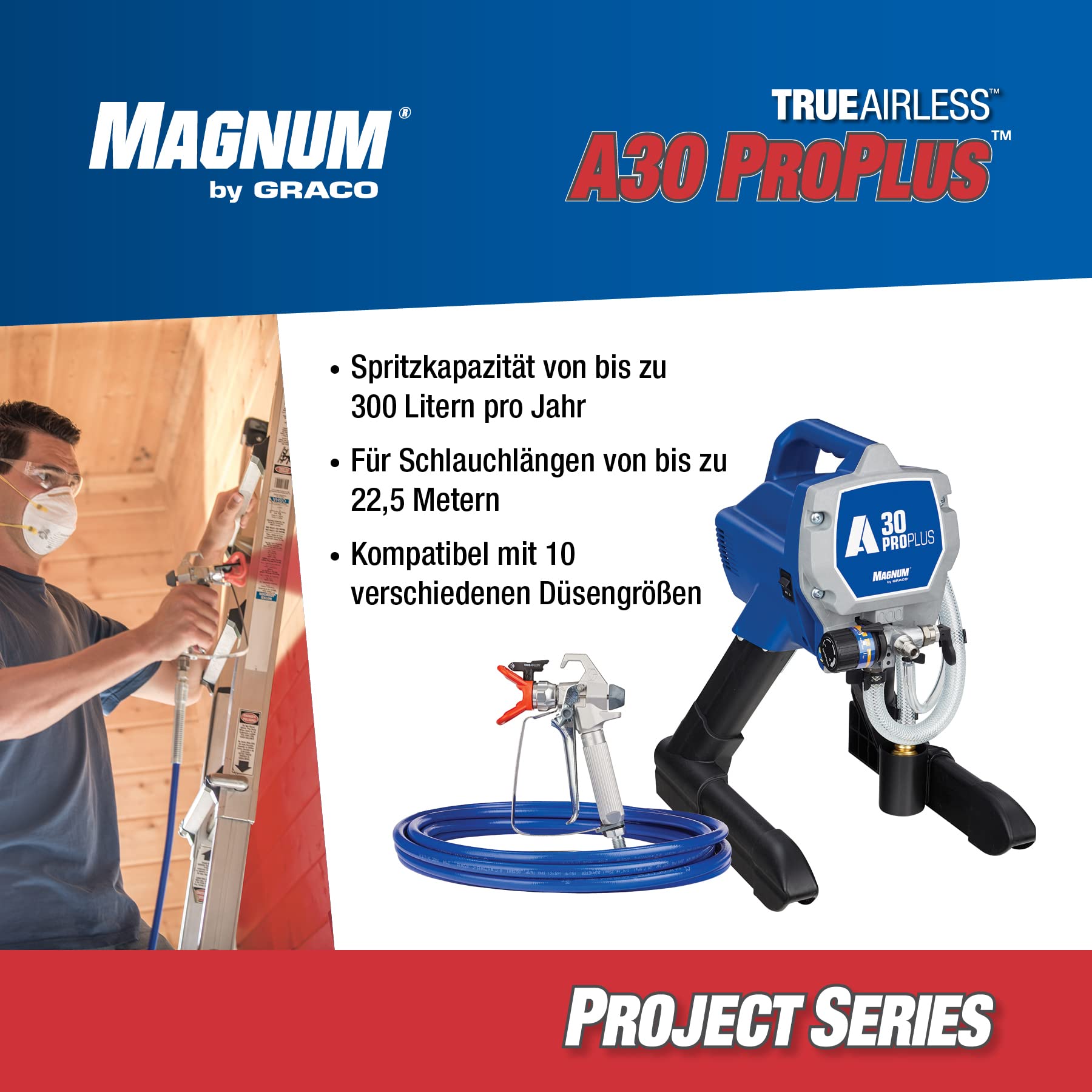 Das Graco Magnum A30 ProPlus ist Ihr verlässlicher Partner für schnelle, saubere und professionelle Malerarbeiten.