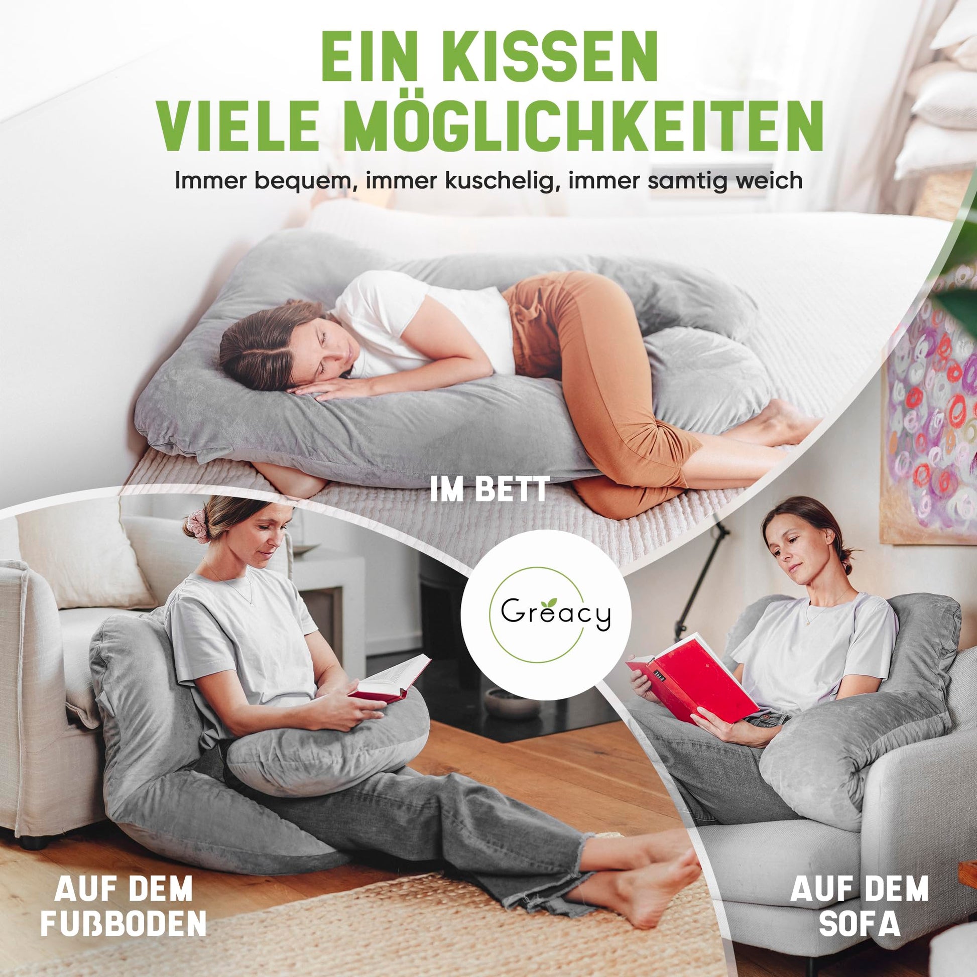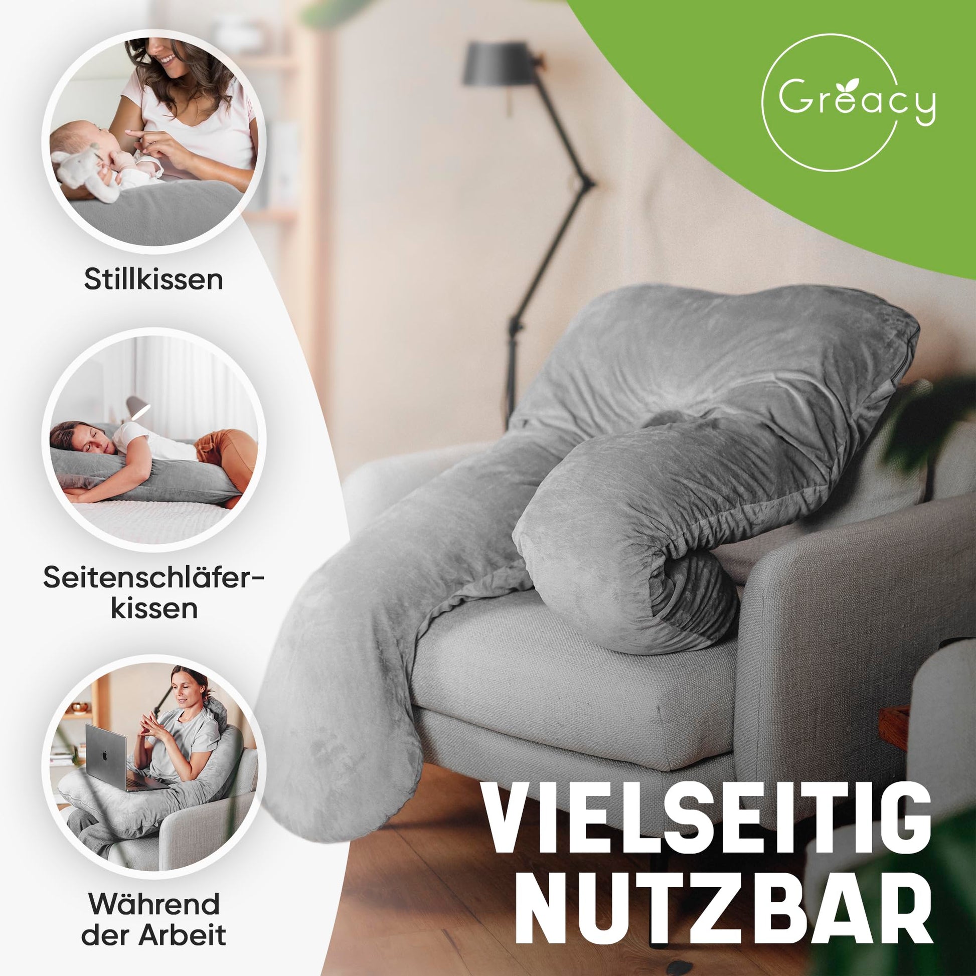 Greacy Seitenschläferkissen XXL – Schwangerschafts- & Stillkissen waschbar