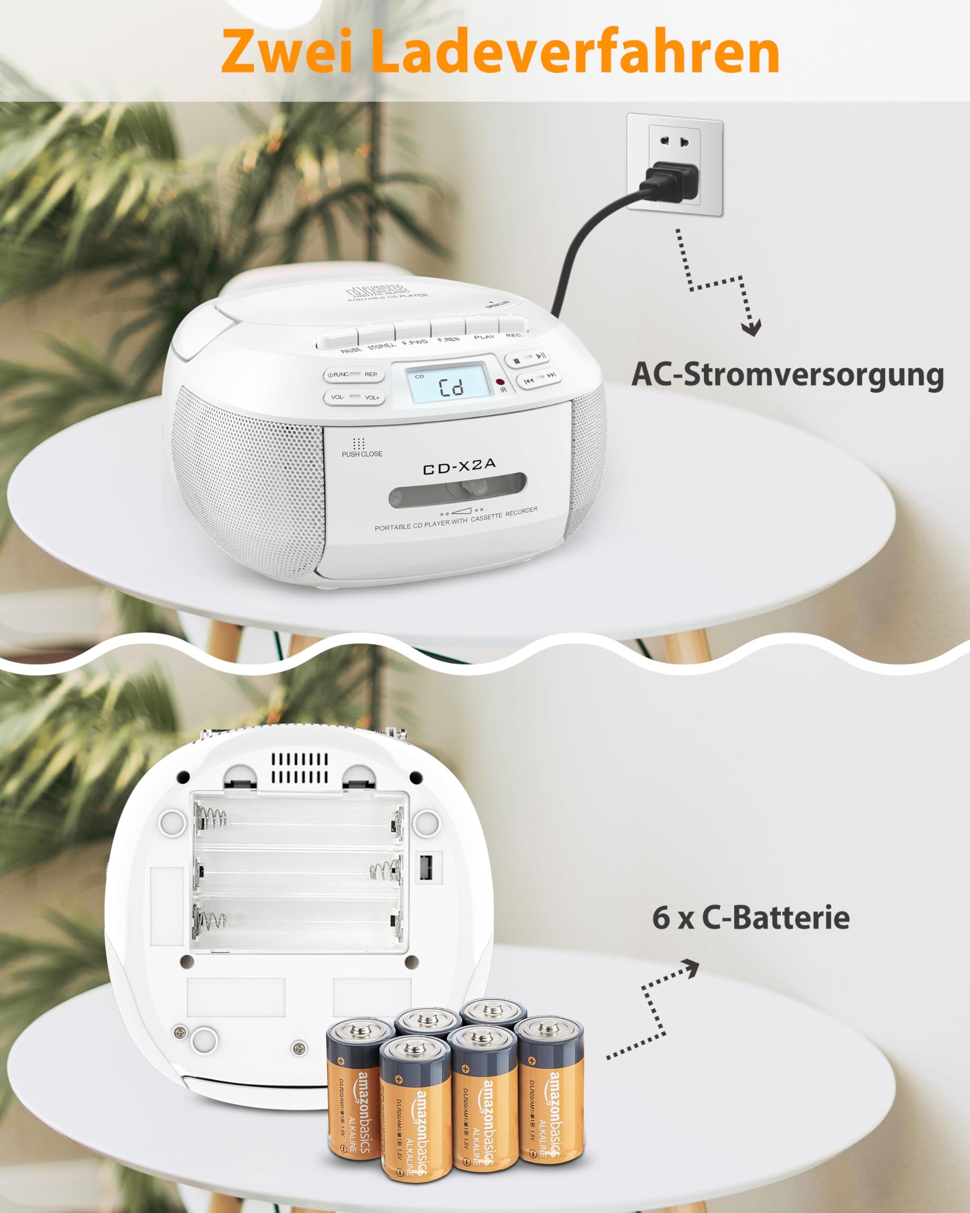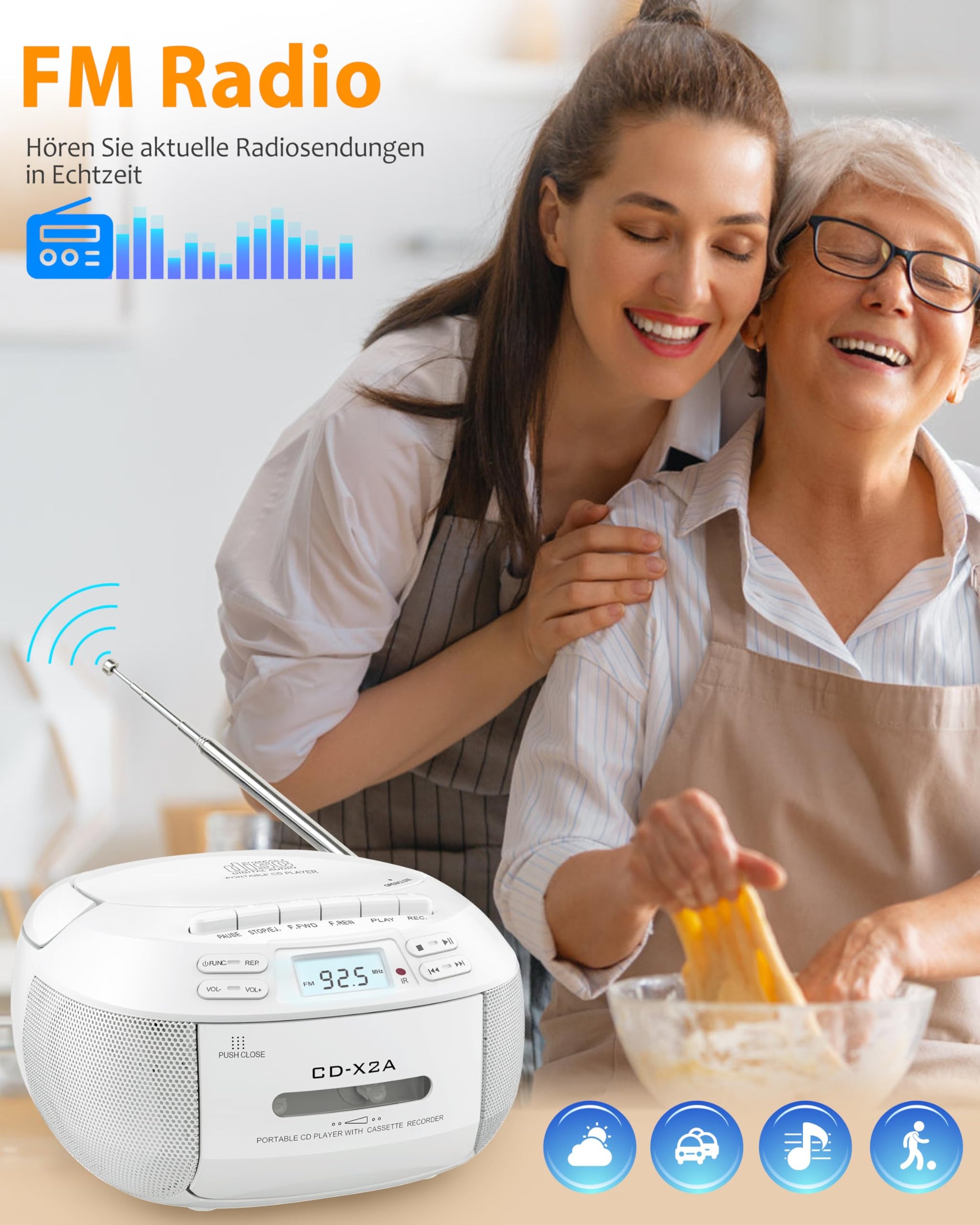- Klassisches Kassettendeck & Radio: Ein integrierter Kassettenspieler mit Aufnahmefunktion lässt alte Schätze wieder aufleben. Das FM-Radio sorgt für den Empfang Ihrer Lieblingssender.