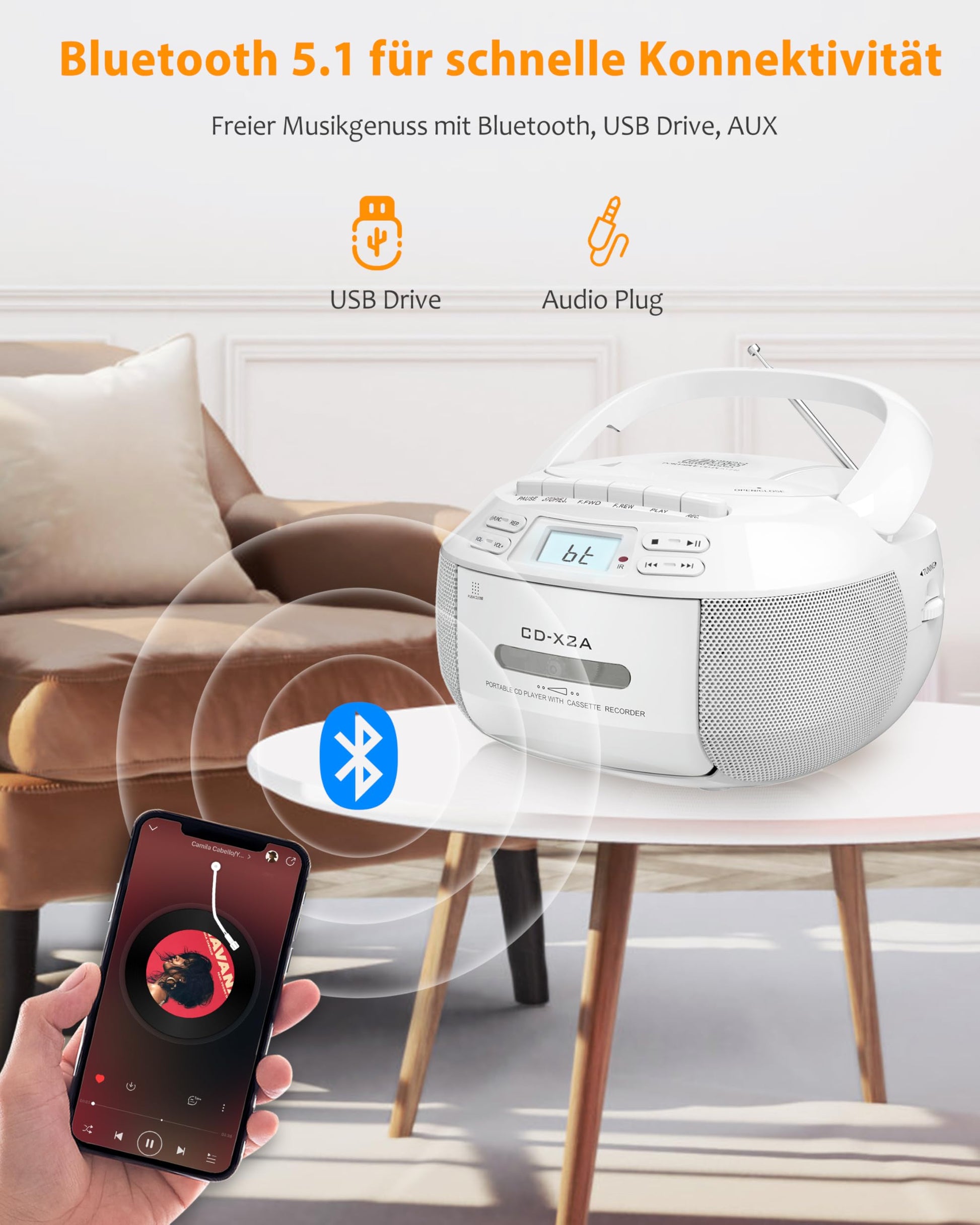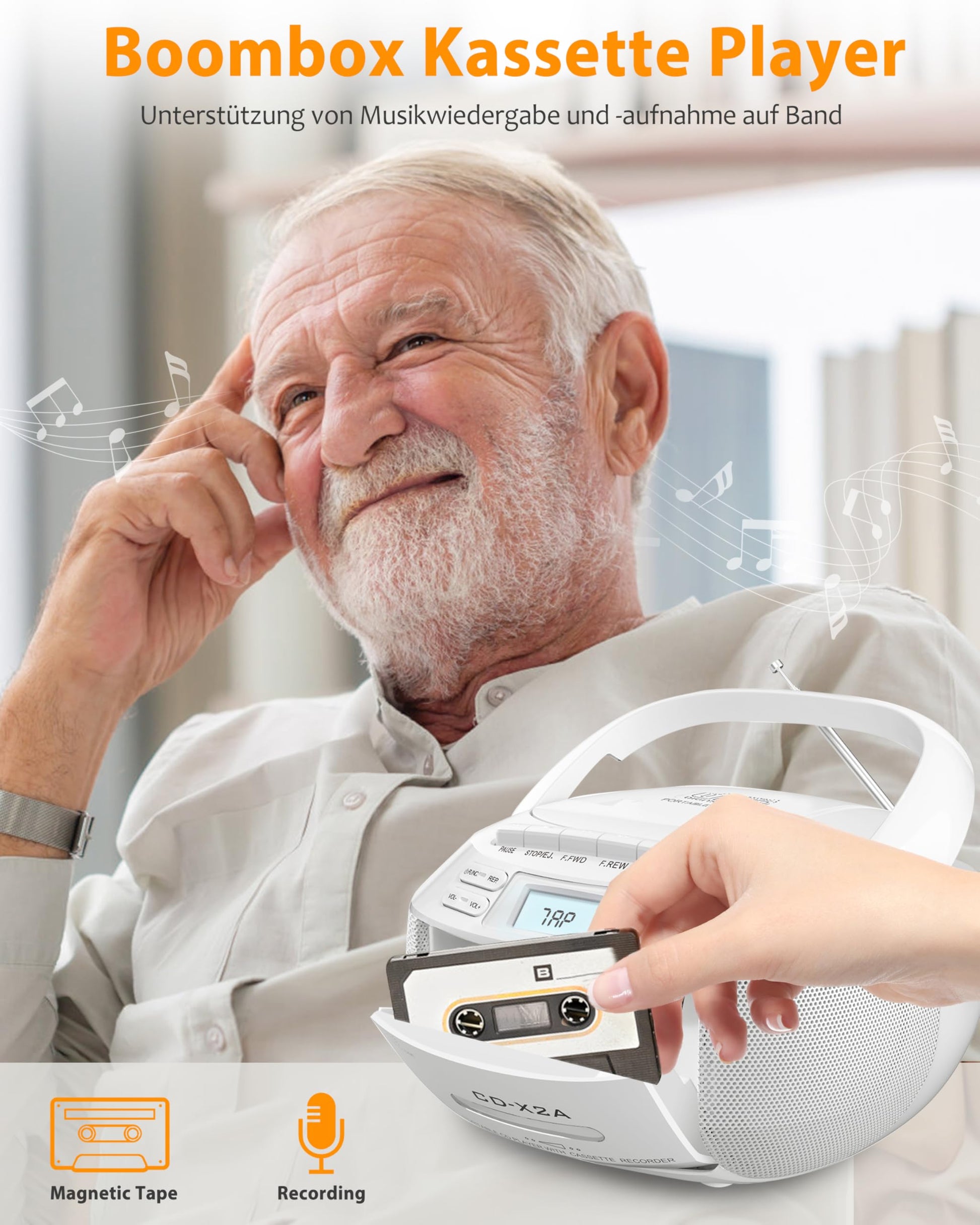 Greadio Boombox CD/Kassettenspieler Bluetooth FM Radio – Weiss