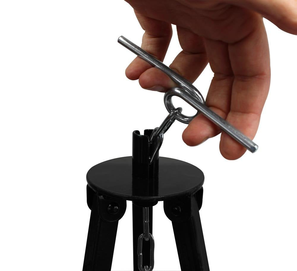 Die Temperatur lässt sich sehr einfach und sicher über den integrierten Kettenzug des Dreibeins regulieren. Damit können Sie den Abstand des Kessels zum Feuer jederzeit mühelos verändern, um die Hitze präzise zu steuern, ohne das heisse Gestell anfassen zu müssen.