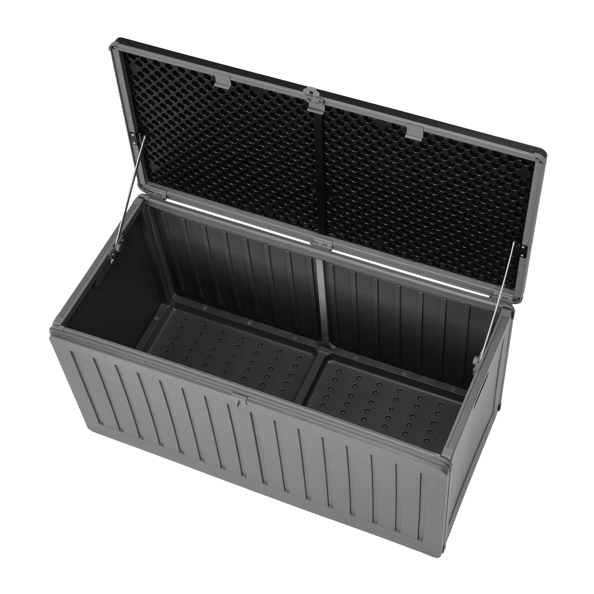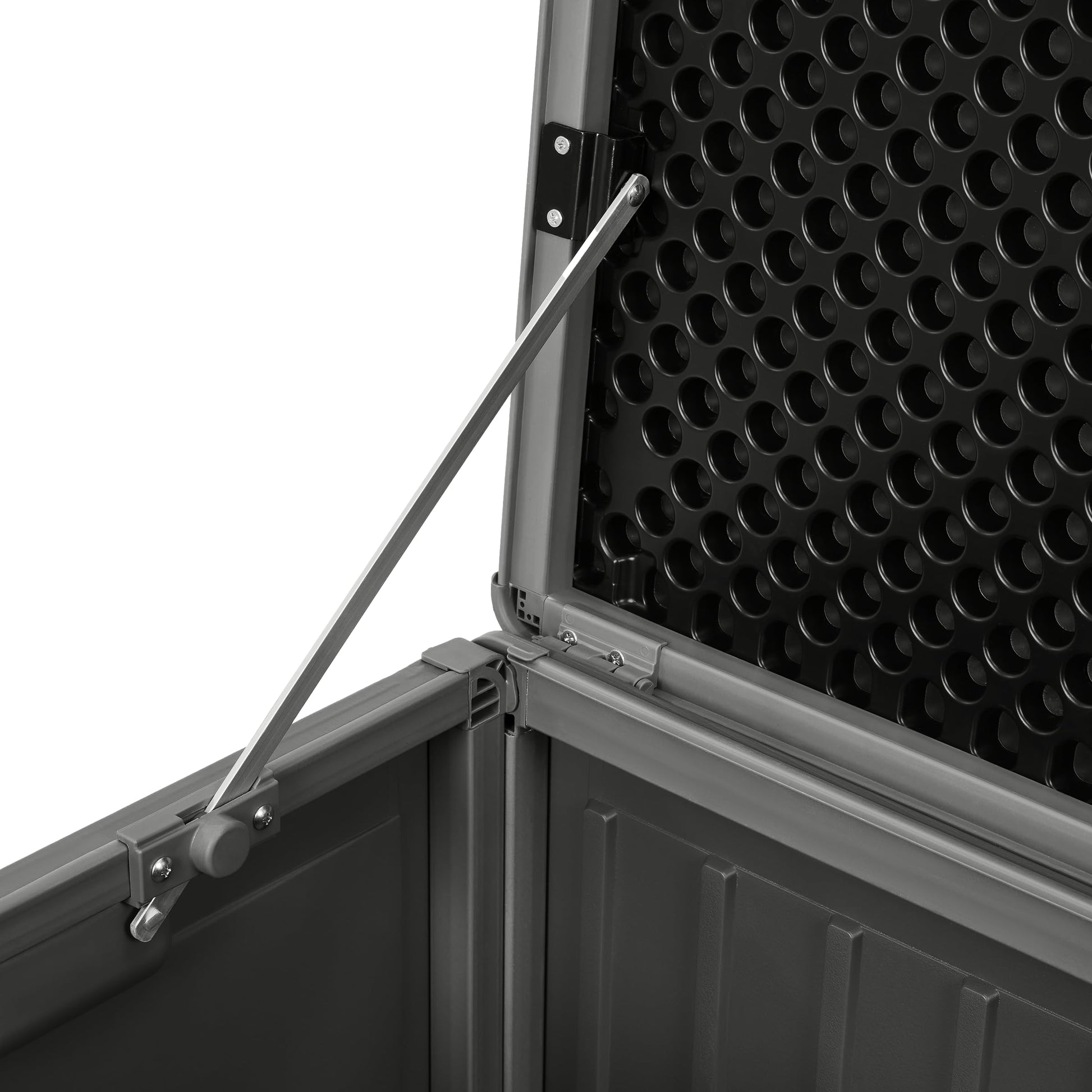 - Einfache Handhabung: Ein Gasdruck-Stossdämpfer sorgt für ein müheloses und sanftes Öffnen des Deckels, während seitliche Tragegriffe den Transport erleichtern.
