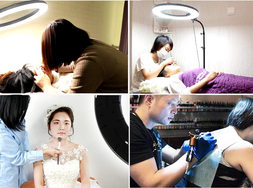 Dieses Ringleuchten-Set ist ein wahres Multitalent. Es eignet sich hervorragend für den professionellen Einsatz in Coiffeursalons, Tattoo-, Nagel- und Kosmetikstudios. Gleichzeitig ist es das perfekte Werkzeug für Content Creator, für Live-Übertragungen, YouTube-Videos, Porträtaufnahmen oder die optimale Ausleuchtung bei Videokonferenzen im Home-Office. Das charakteristische Ringlicht sorgt zudem für einen bezaubernden Lichtreflex in den Augen und verleiht Porträts eine besondere Ausstrahlung.