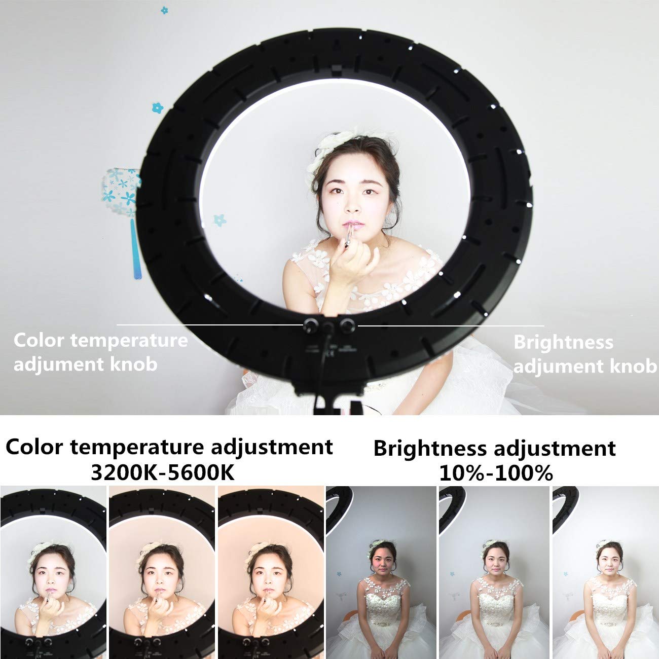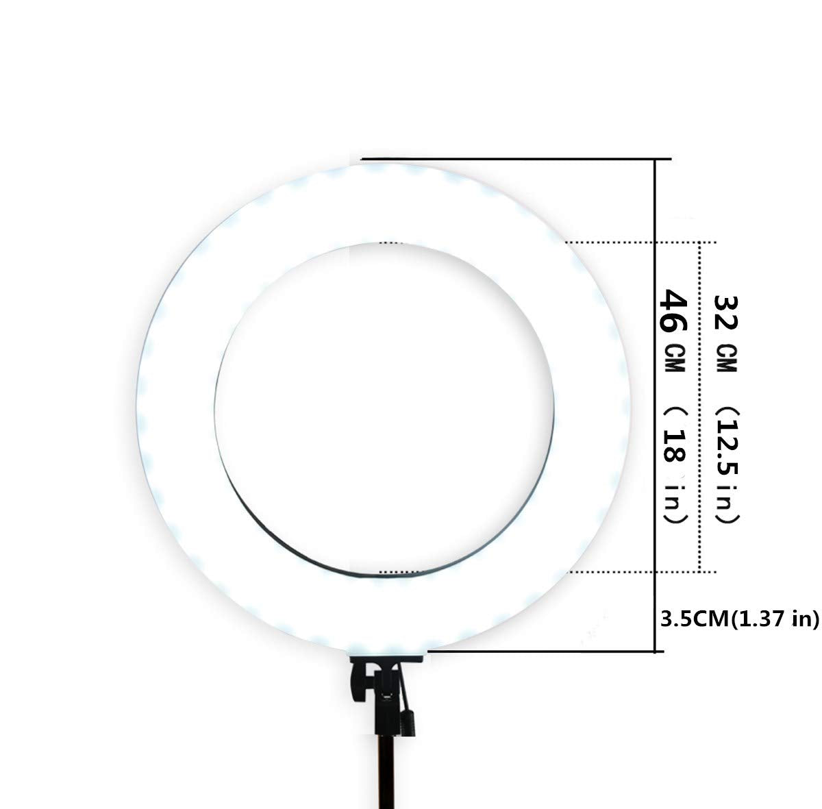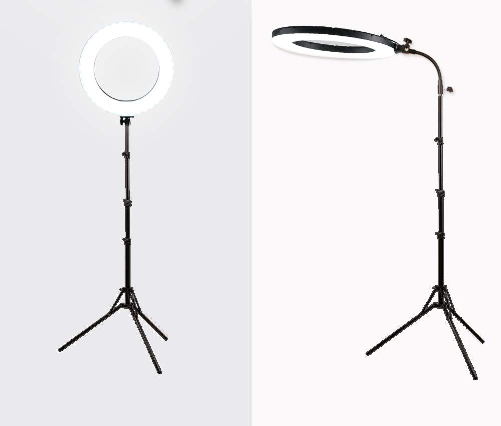 - Komplettes Paket: Beinhaltet eine 18-Zoll-Ringleuchte, einen flexiblen Schwanenhals, ein Lichtstativ, eine Smartphone-Halterung, einen Netzadapter mit Stecker sowie eine praktische Transporttasche.