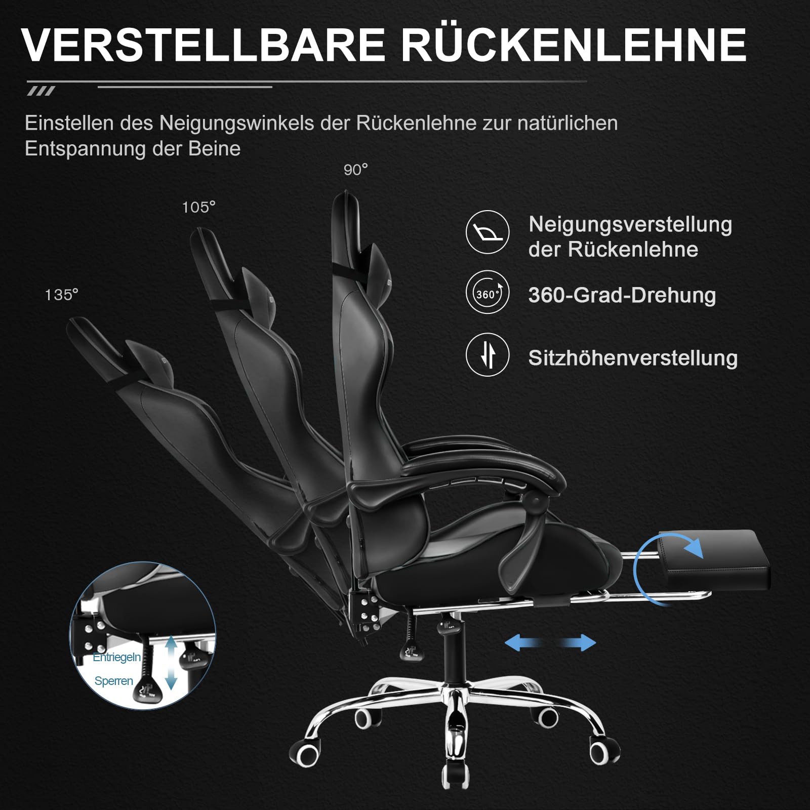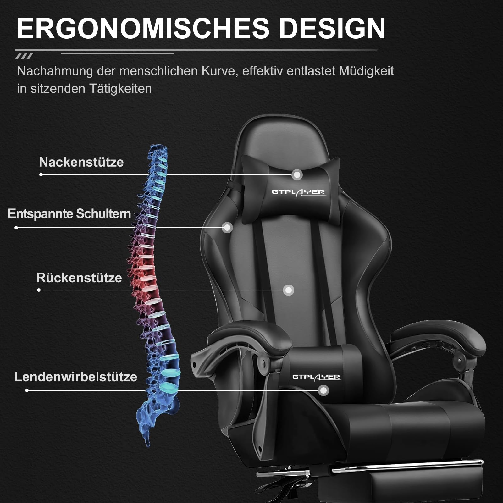 GTPLAYER Gaming Stuhl Bürostuhl Massage Fussstütze - Schwarz