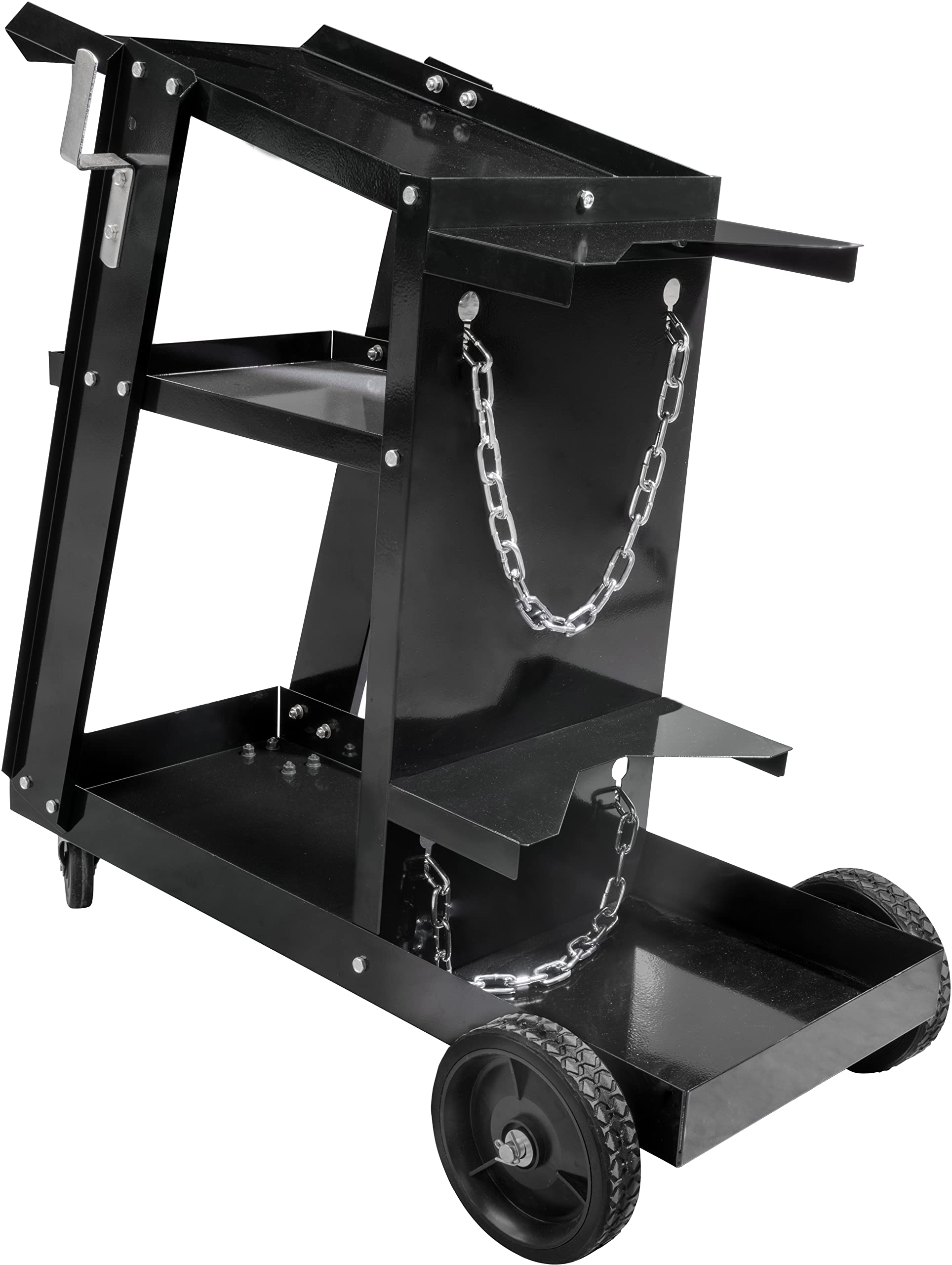 Die maximale Gesamttragkraft des Schweisswagens beträgt 27 kg. Diese Belastungsgrenze bezieht sich auf das Gesamtgewicht von Schweissgerät, Gasflasche und Zubehör und sollte für einen sicheren Stand nicht überschritten werden.