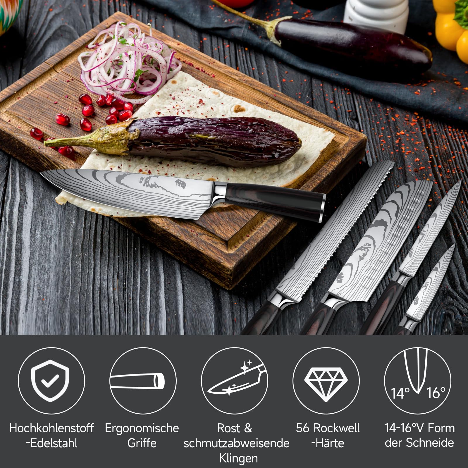 Statten Sie Ihre Küche mit diesem hochwertigen Messerset aus und heben Sie Ihre Kochkünste auf ein neues Level.