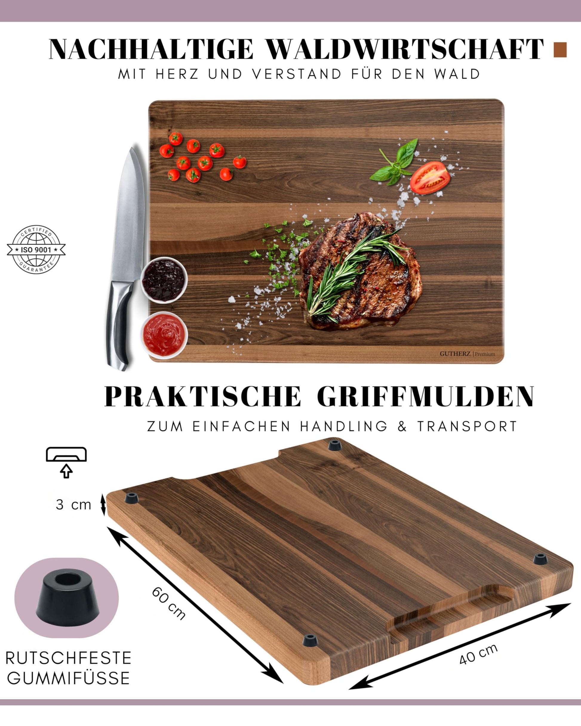 Gutherz® Schneidebrett Nussbaumholz XXL - 60x40x3 cm
