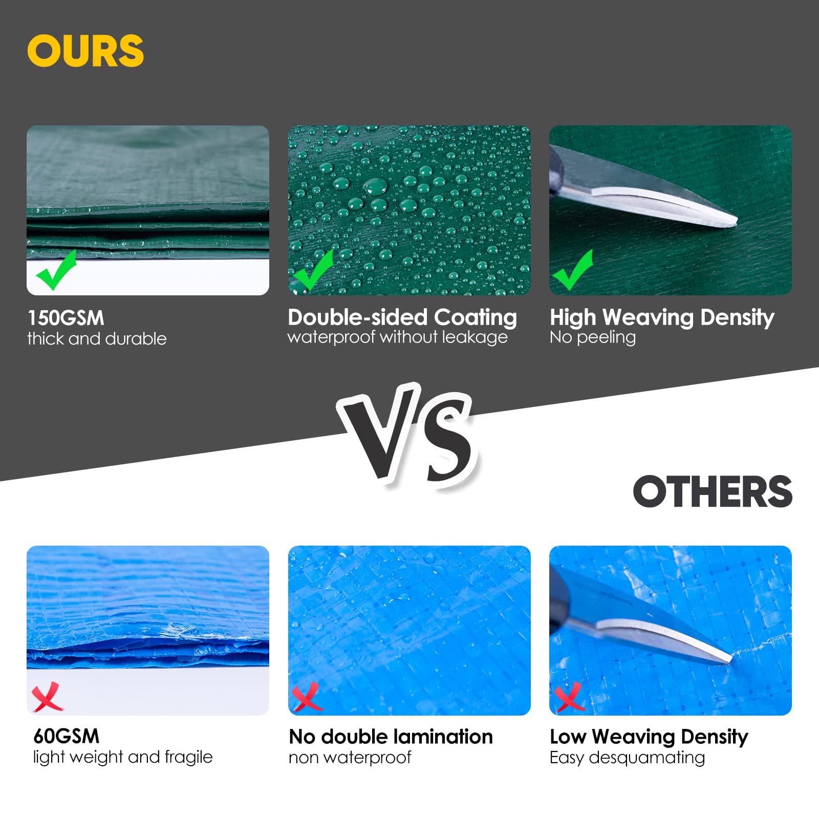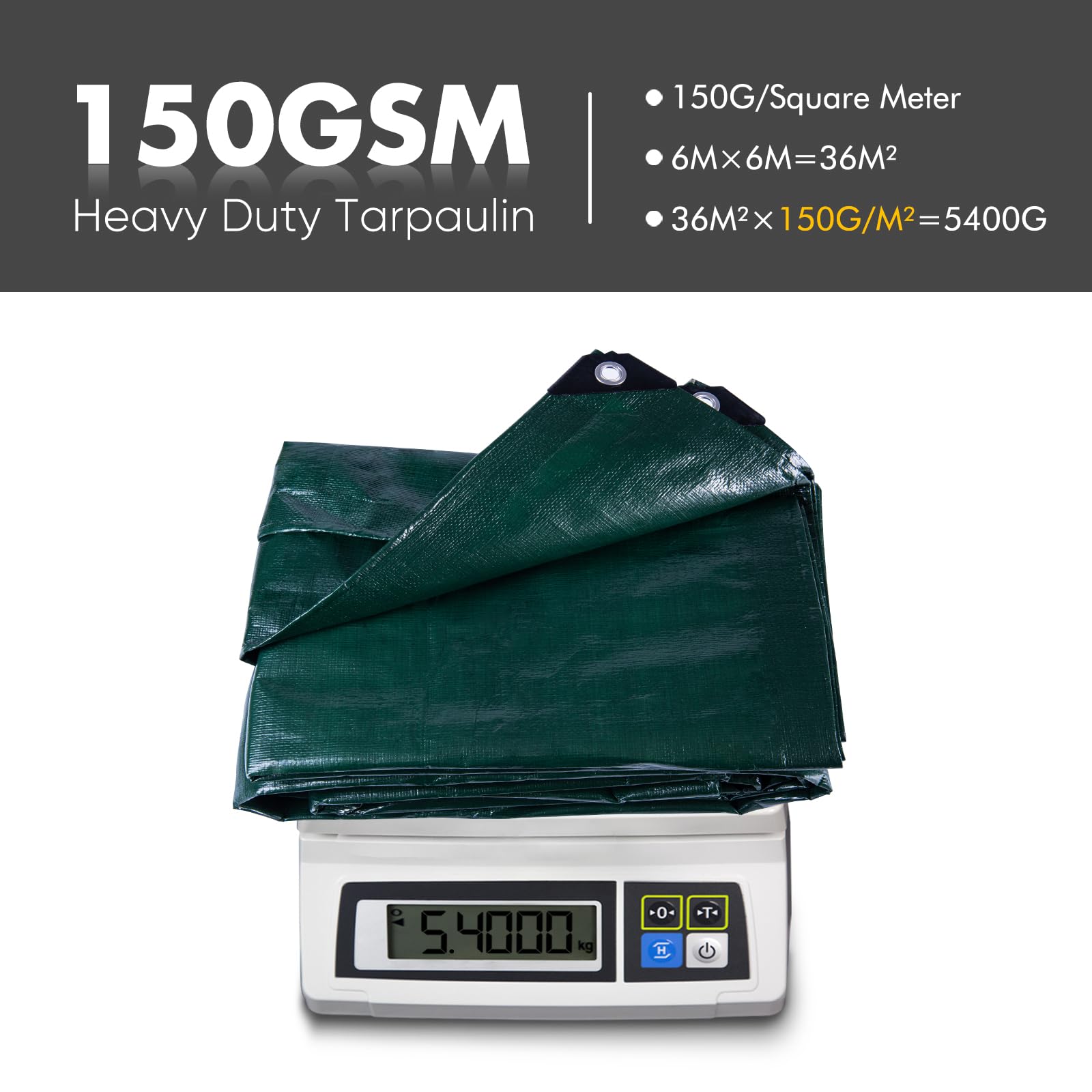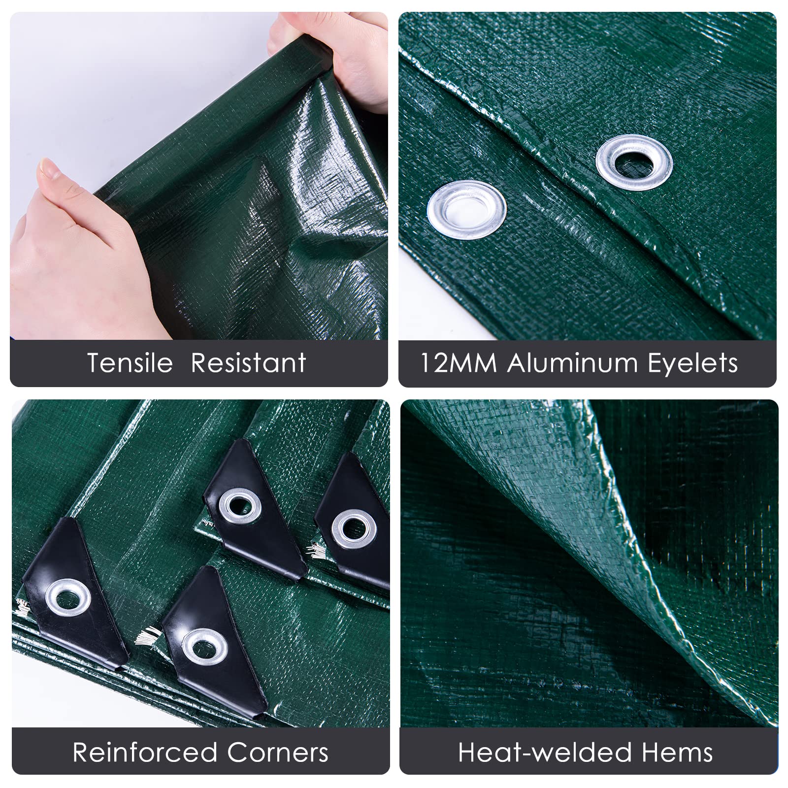 - Starkes Material: Gefertigt aus hochdichtem Polyethylen-Gewebe mit einer Materialstärke von 150 g/m² (0,28 mm Dicke), was für eine hohe Widerstandsfähigkeit sorgt.