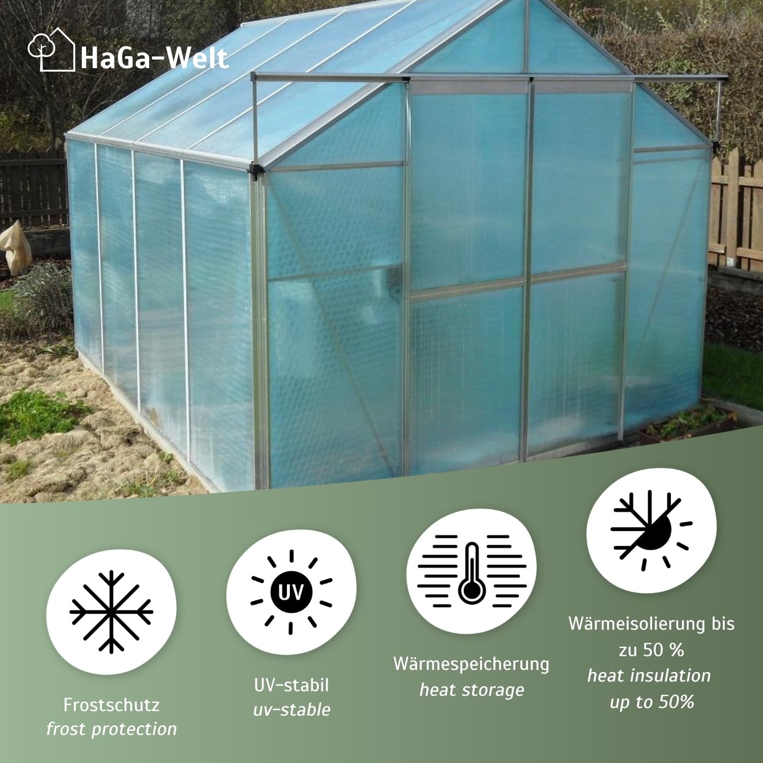 - Eigenschaft: Trotz der Isolation wird eine hohe Lichtdurchlässigkeit für Ihre Pflanzen gewährleistet.