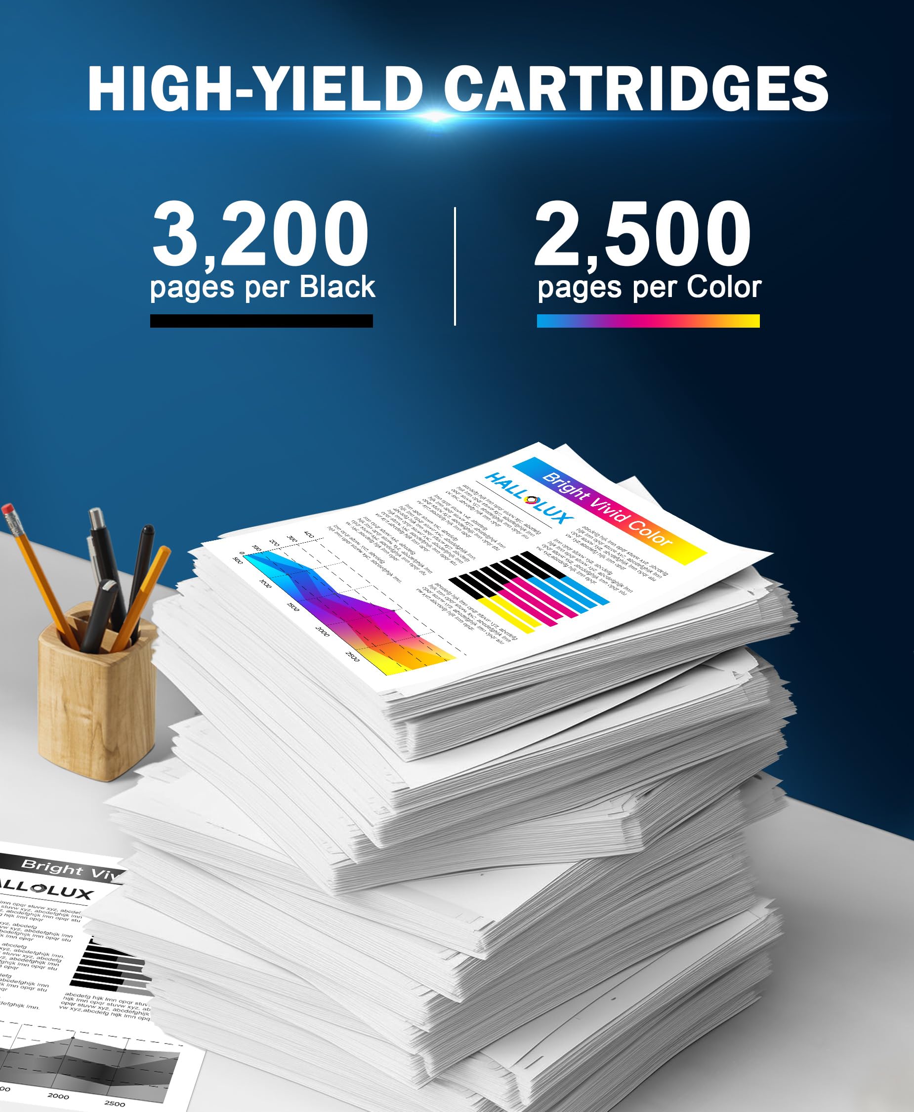 - Hohe Seitenleistung: Drucken Sie bis zu 3'200 Seiten in Schwarz und bis zu 2'500 Seiten pro Farbkartusche (basierend auf 5 % Deckung).