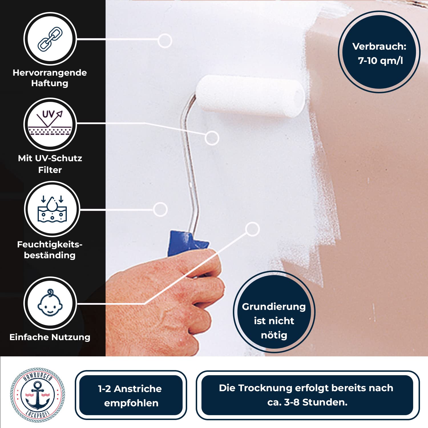 Die in Deutschland hergestellte Qualitätsformel sorgt für ein extrem widerstandsfähiges und abriebfestes Ergebnis. Die Beschichtung bildet eine sprichwörtlich hammerharte Oberfläche, die den täglichen Belastungen problemlos standhält und langanhaltenden Schutz bietet.