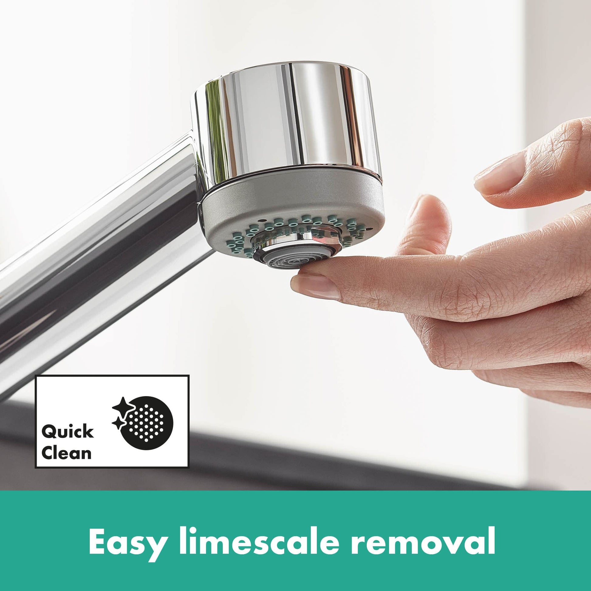 Die Reinigung ist dank der QuickClean-Technologie sehr einfach. Kalkablagerungen am Silikoneinsatz des Auslaufs lassen sich mühelos entfernen, indem Sie einfach mit dem Finger darüber rubbeln. Die widerstandsfähige Chromoberfläche ist ebenfalls sehr pflegeleicht.