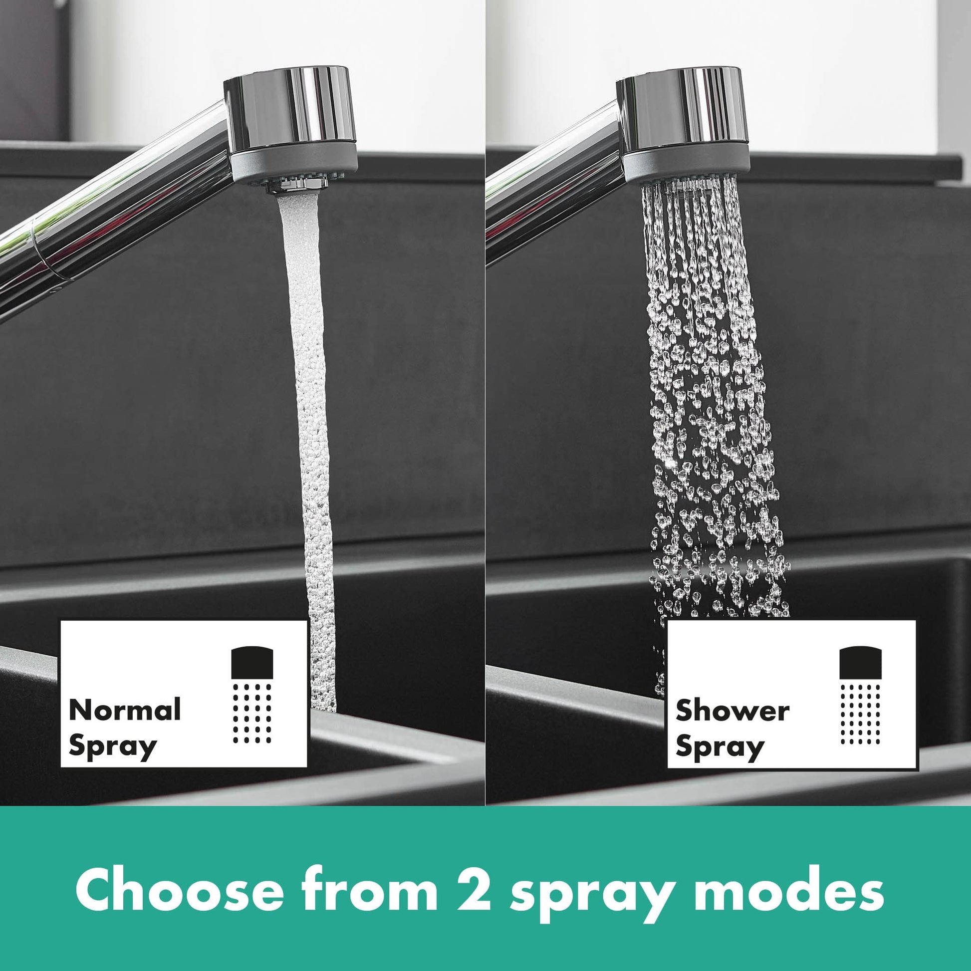 - Integrierte Ausziehbrause: Erweitert Ihren Aktionsradius und erleichtert das gezielte Abspülen von Lebensmitteln oder das Befüllen von Töpfen.