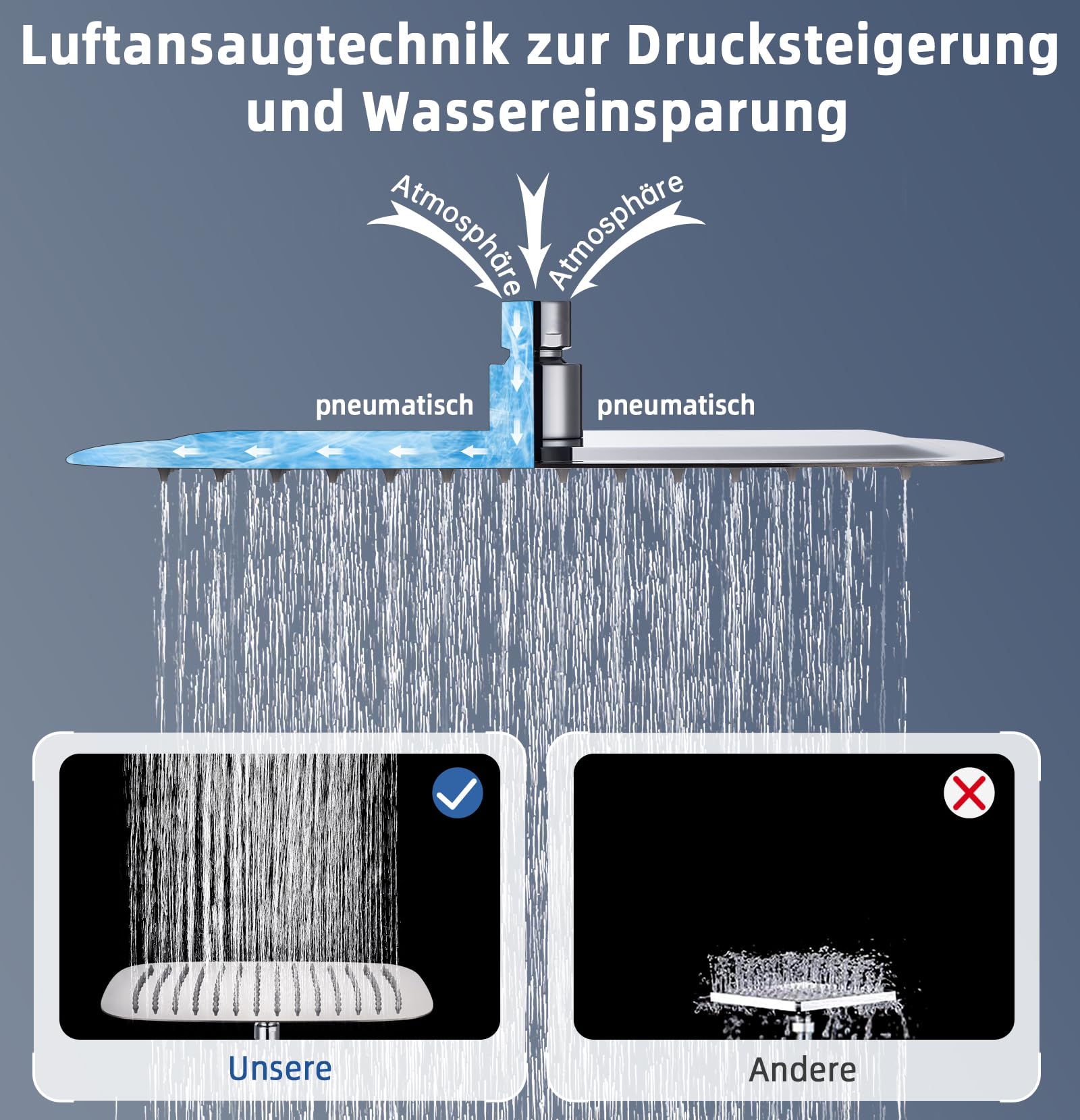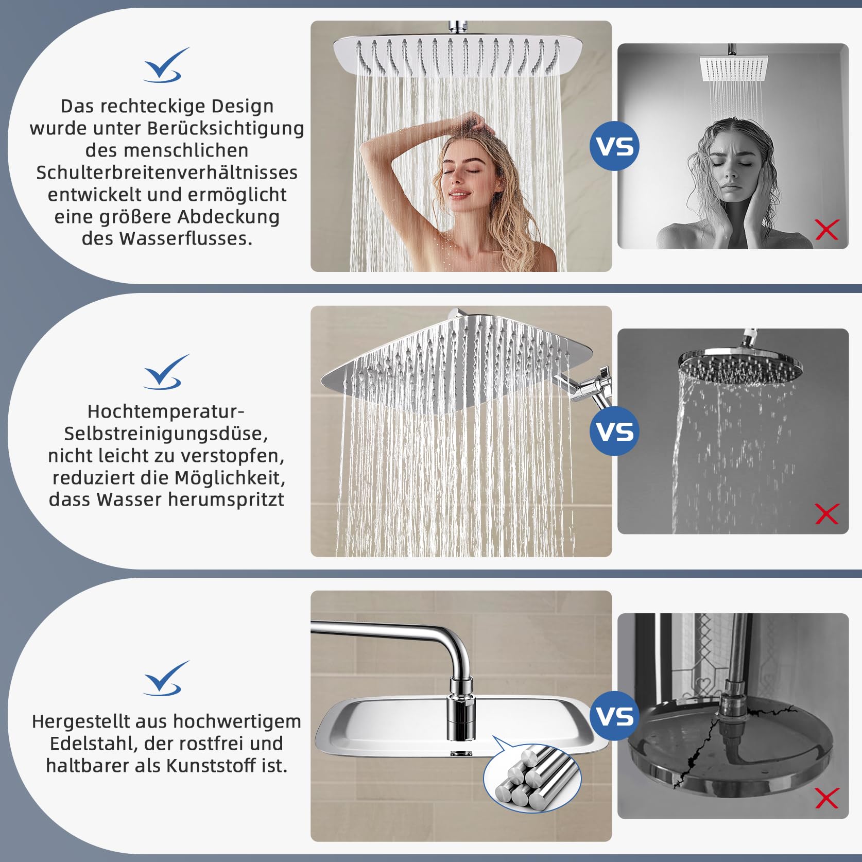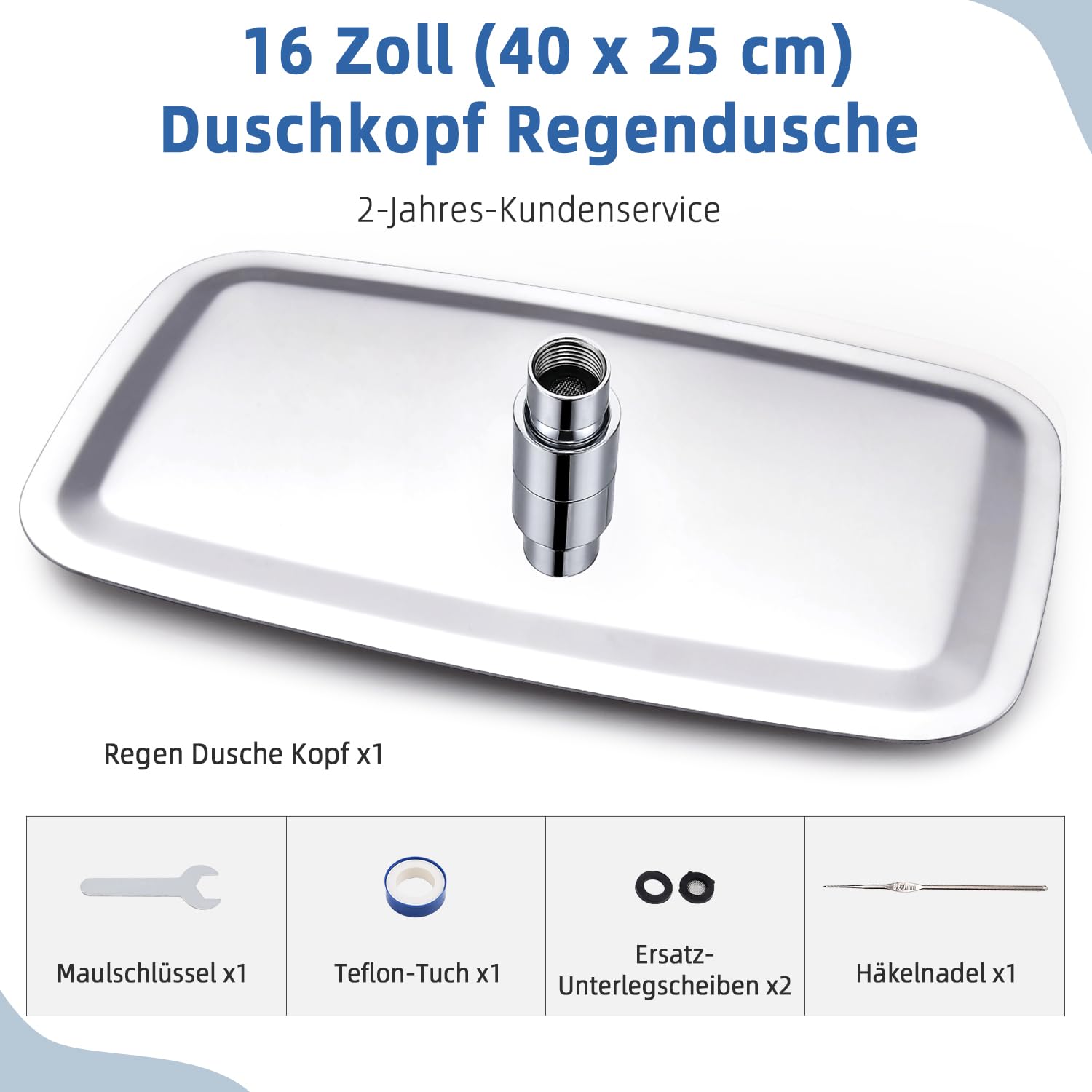 - Grosszügige Dimension: Mit einer Fläche von 40 x 25 cm sorgt der Duschkopf für eine breite und gleichmässige Wasserverteilung.