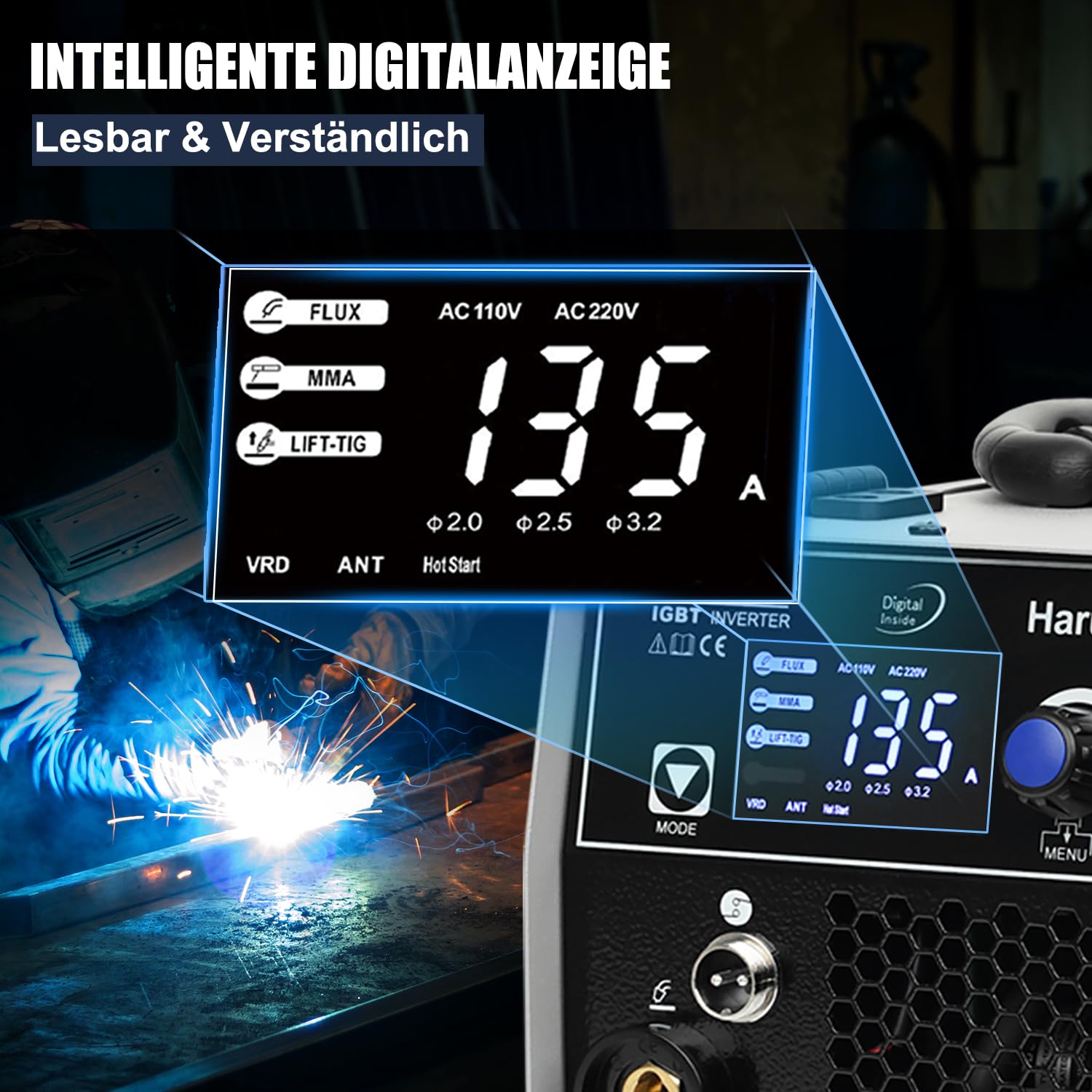 - Intelligente MMA-Funktionen: Ausgestattet mit einem "Heisslichtbogenstart" für eine um 50% zuverlässigere Zündung und einer automatischen Lichtbogenkorrektur für stabile Ergebnisse.