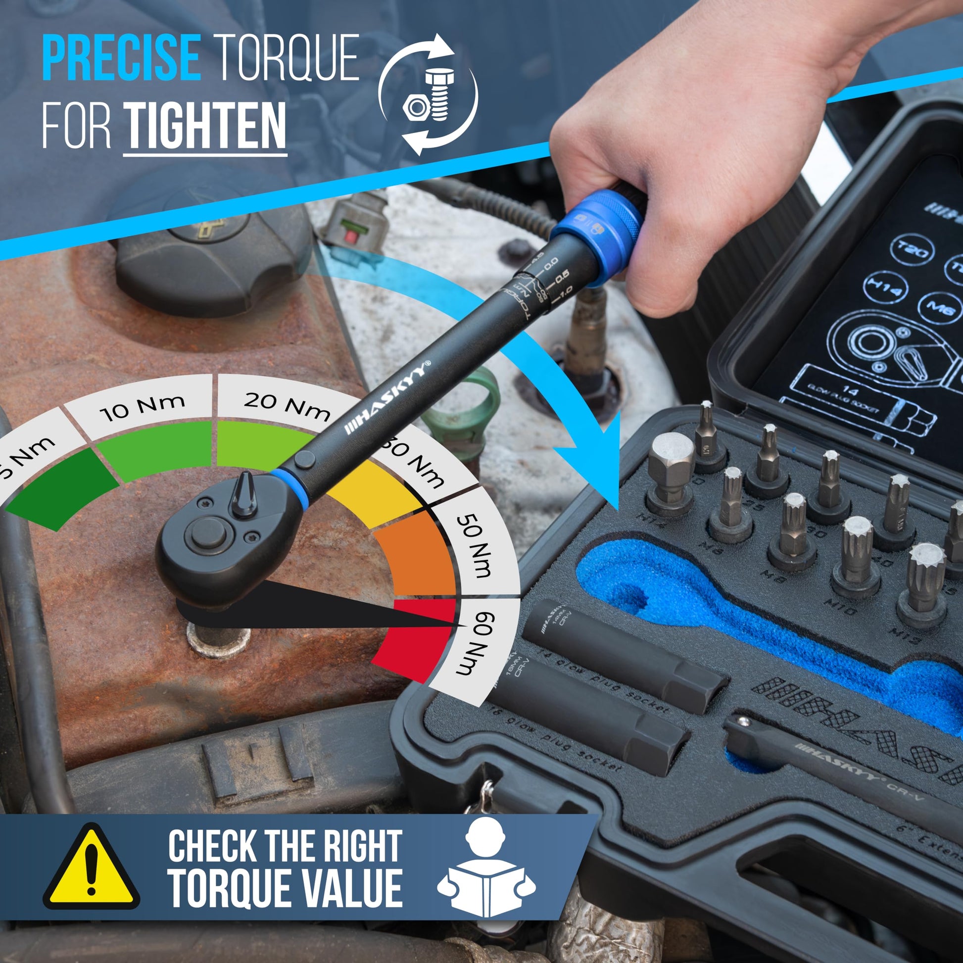 HASKYY Drehmomentschlüssel Set 3/8" 5-60Nm Motorrad - Black Series