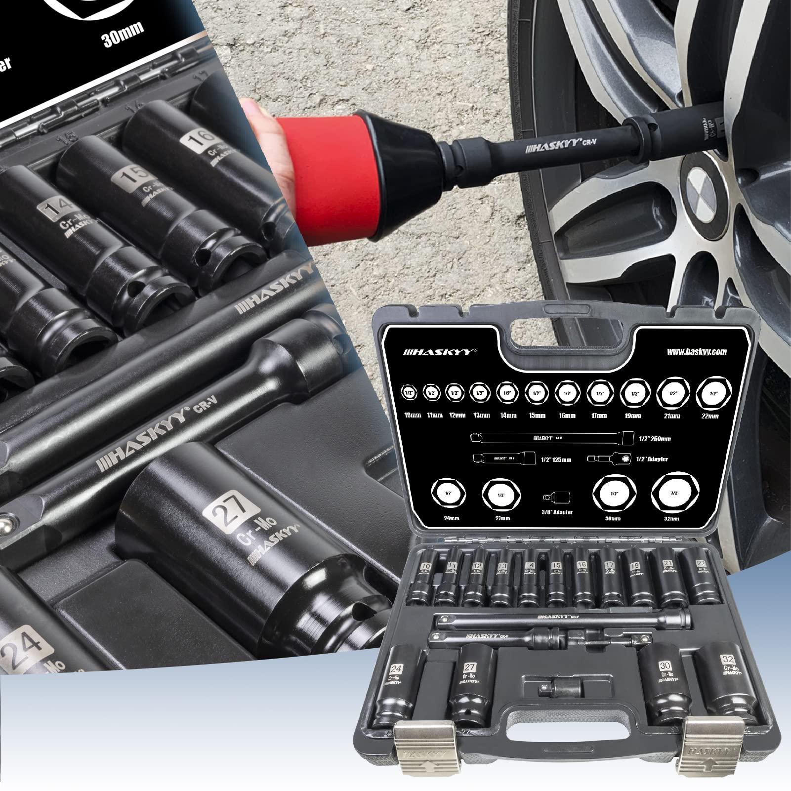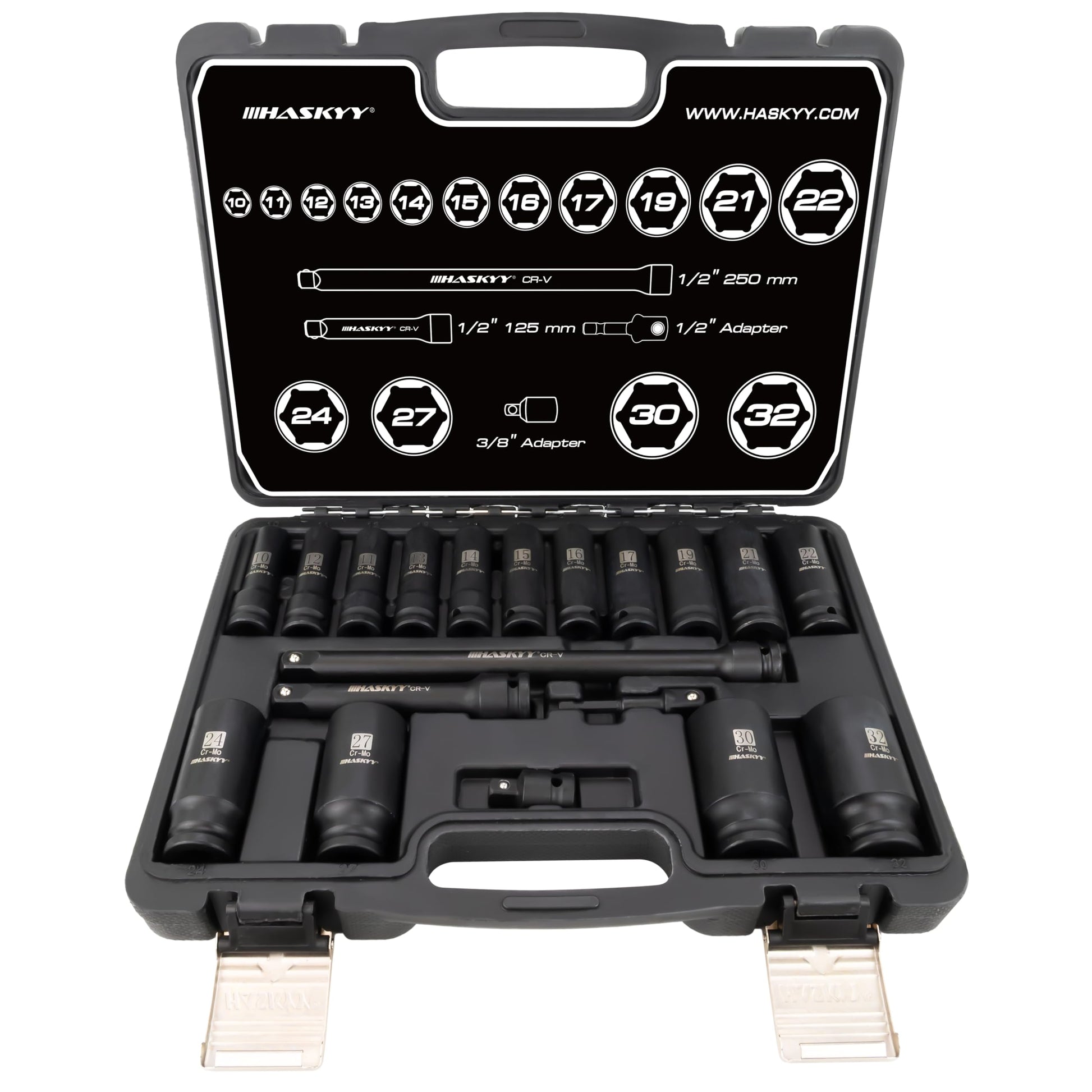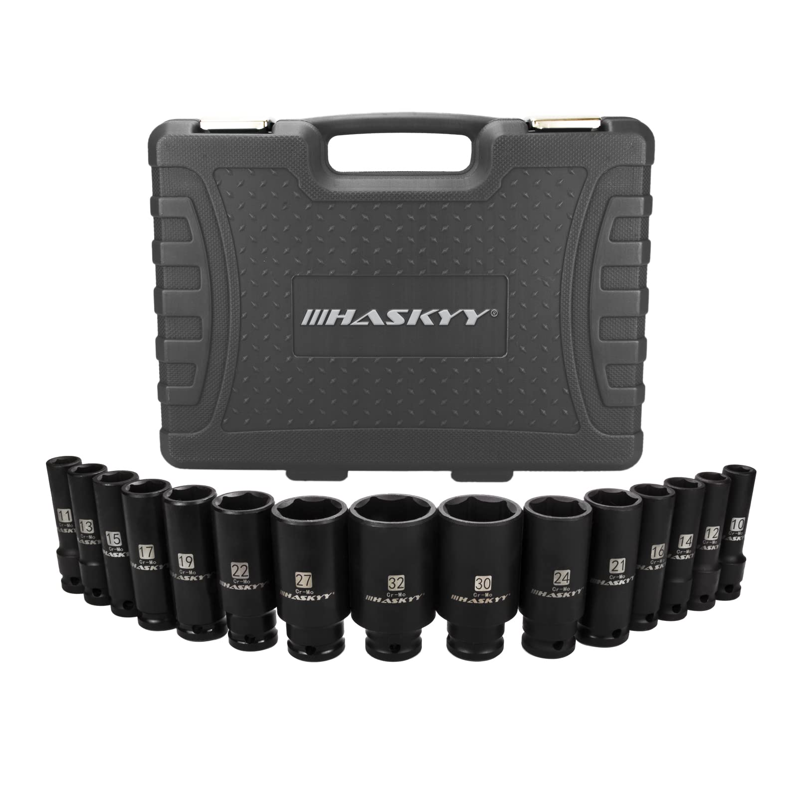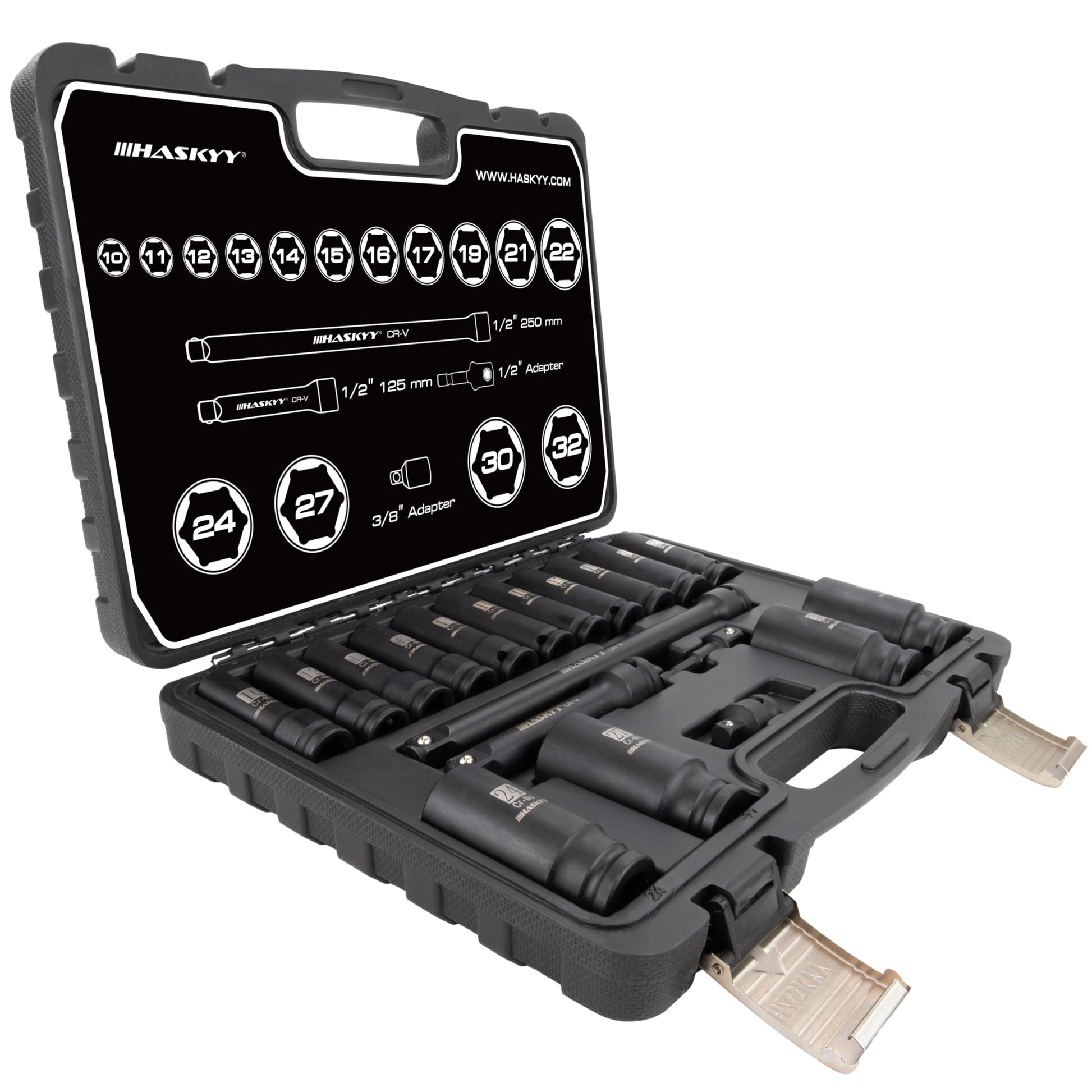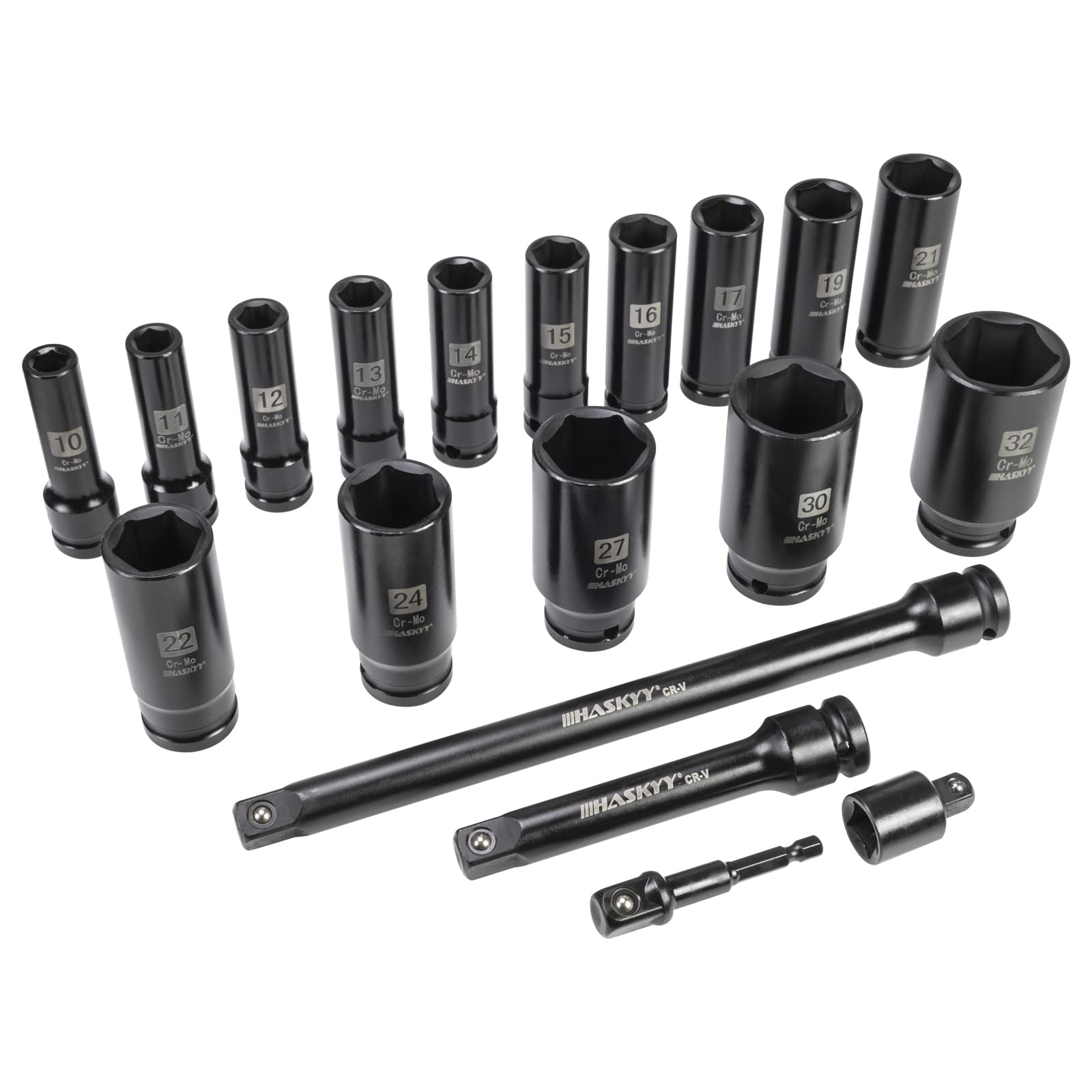 HASKYY Kraft Schlagschrauber Nüsse Satz 19-tlg. 1/2" 10-32mm