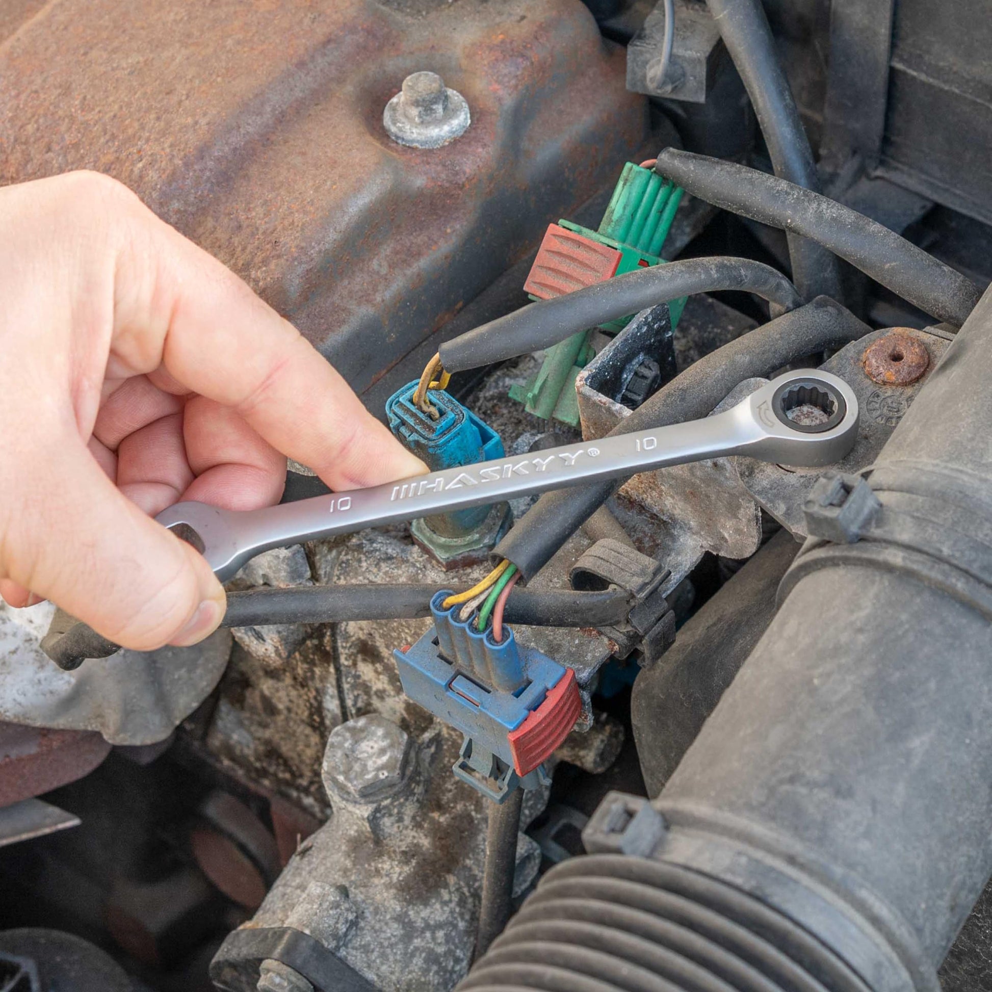 Dieses 13-teilige Ratschenschlüssel-Set von HASKYY ist die ideale Lösung für Profis und ambitionierte Heimwerker und bietet für zahlreiche Schraubarbeiten das passende Werkzeug.