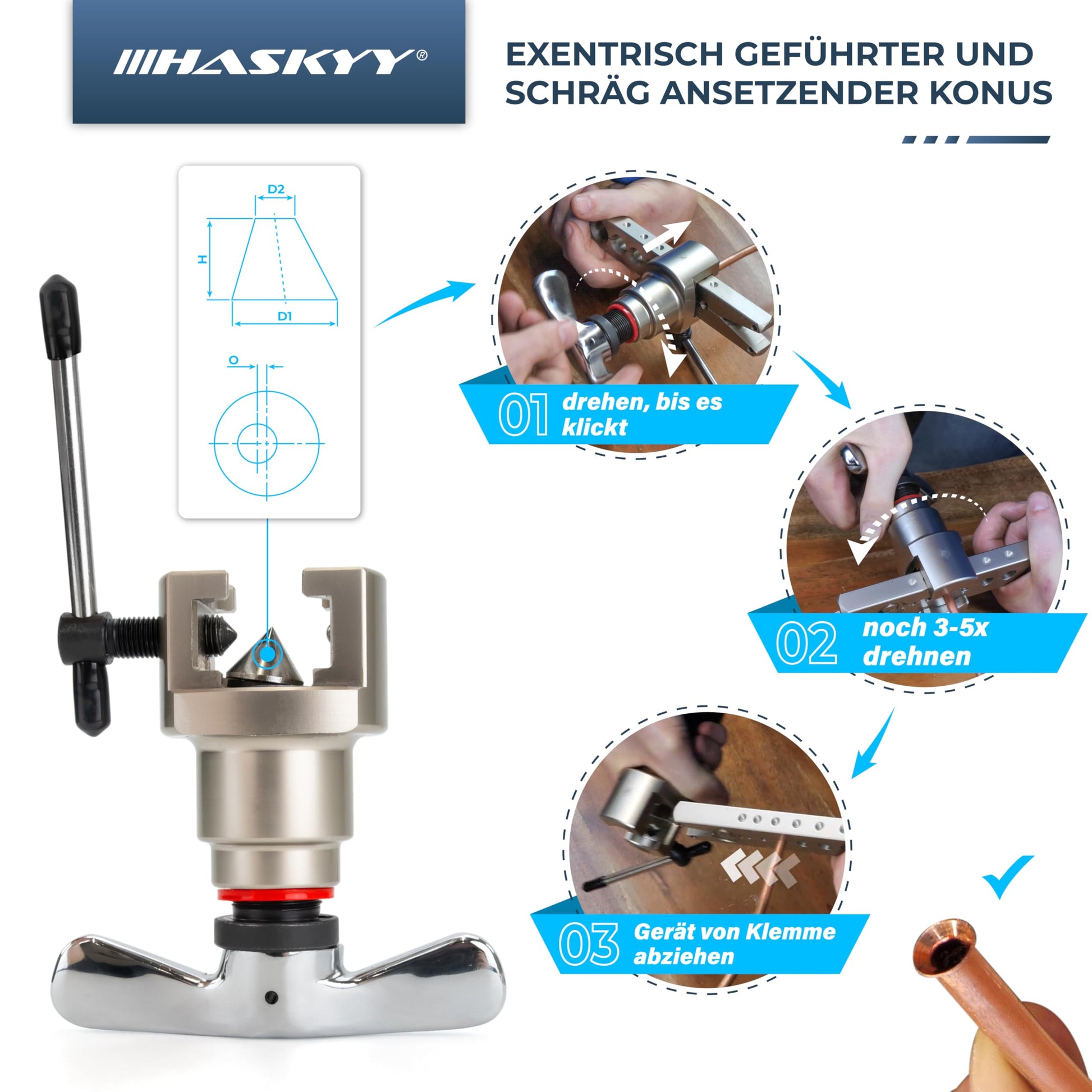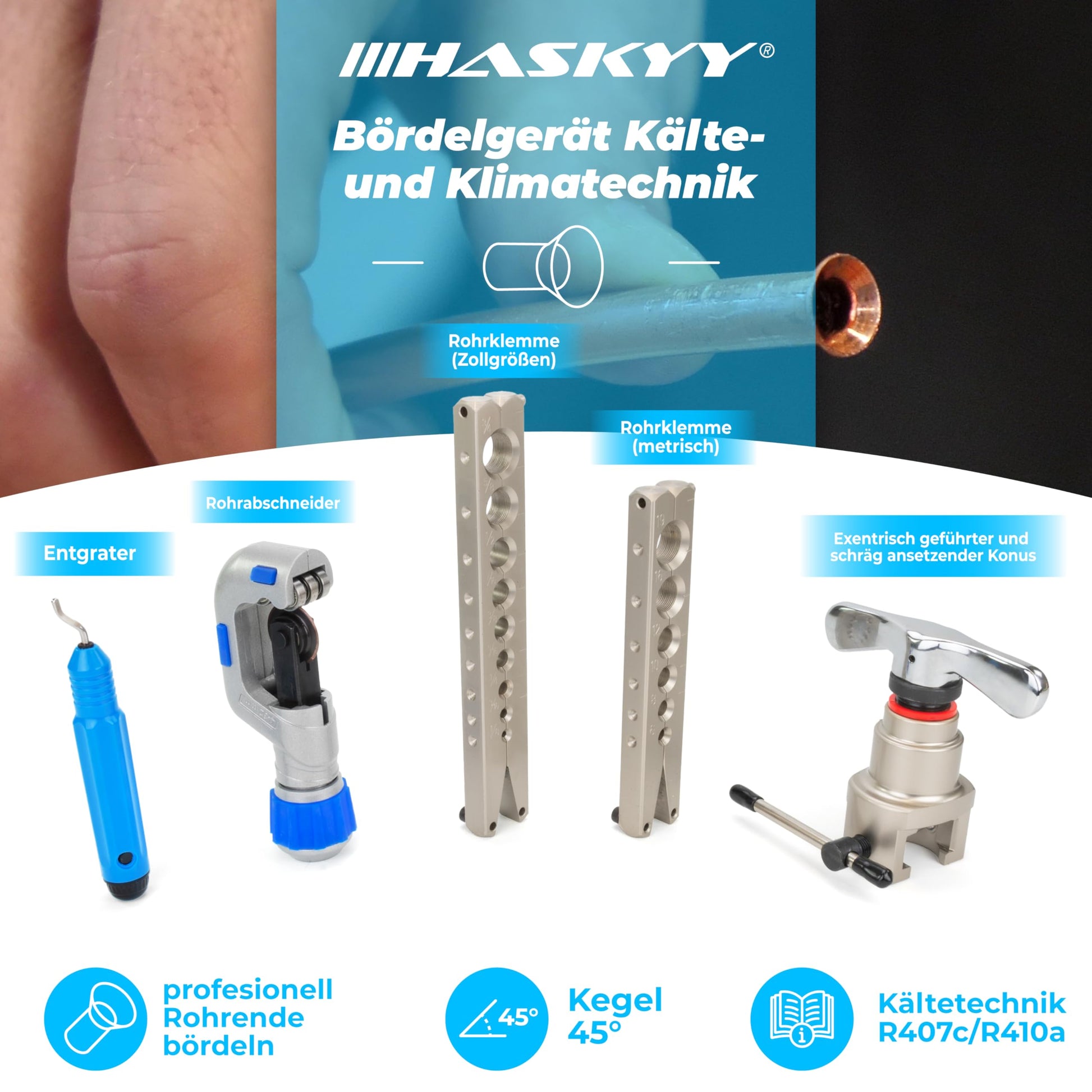 HASKYY Bördelwerkzeug Taumelbördelgerät 5-19mm – inkl. Rohrabschneider