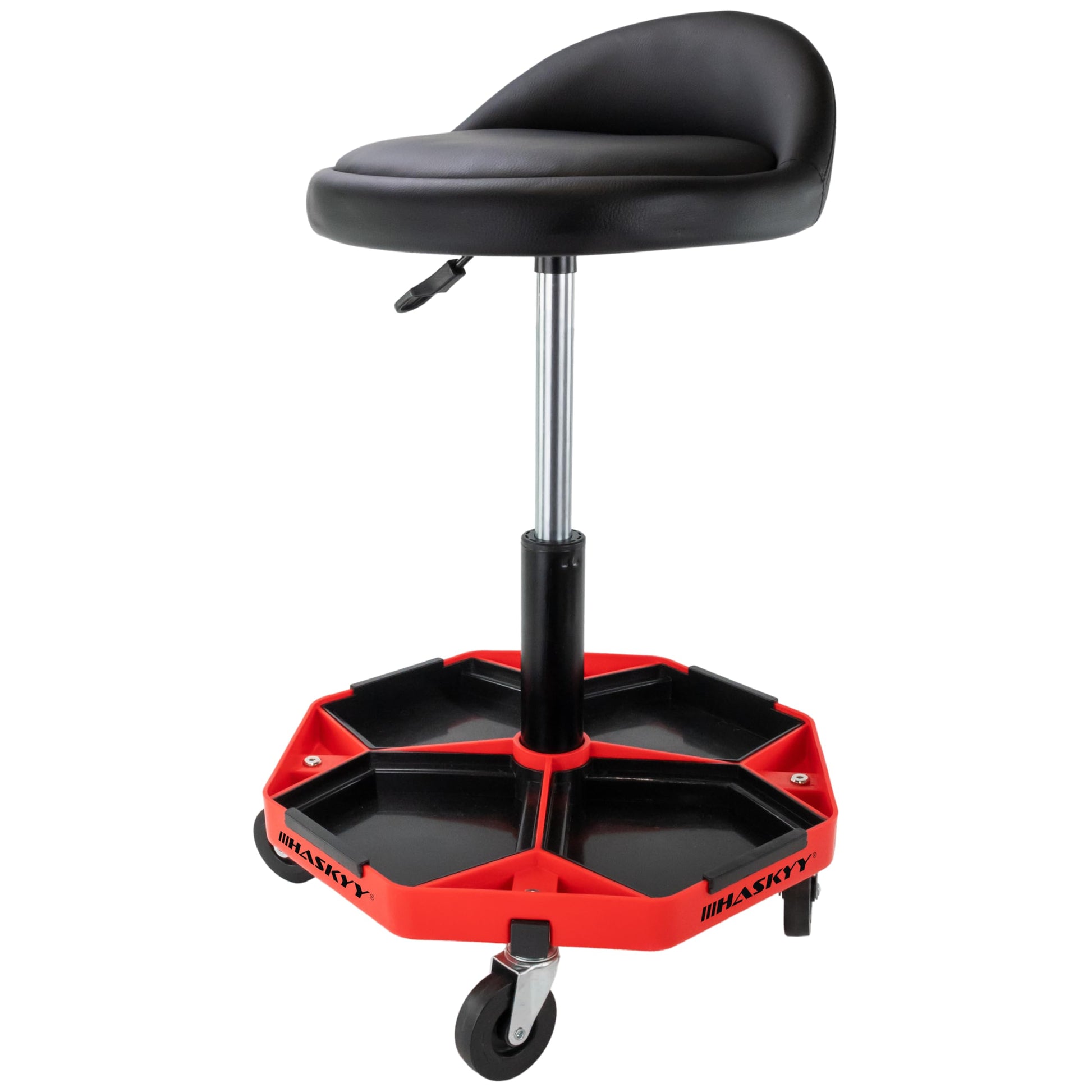 HASKYY Werkstatthocker Rollhocker – Rückenlehne, höhenverstellbar