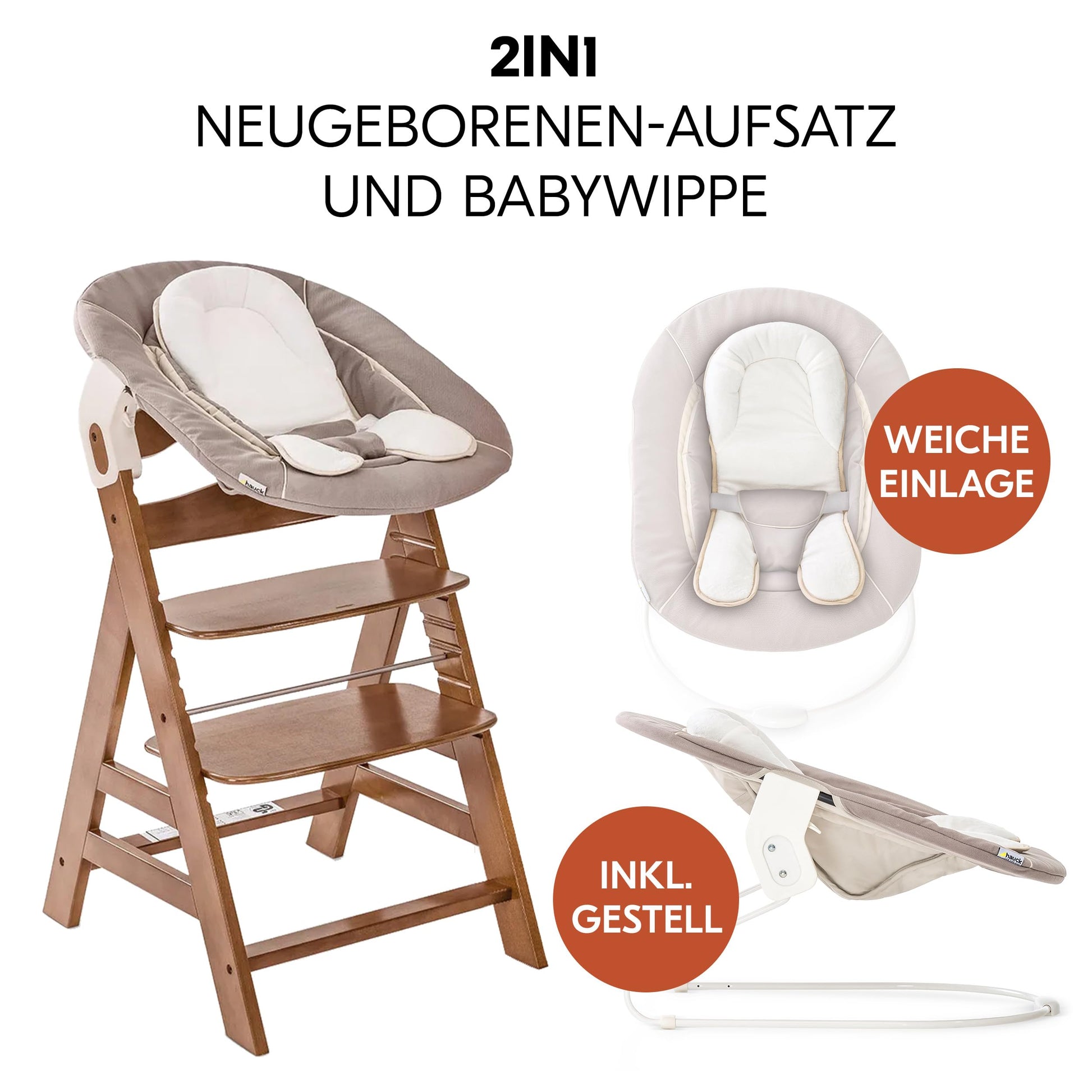 hauck Alpha+ Newborn Set 2in1 Bouncer Babyhochstuhl - Walnuss