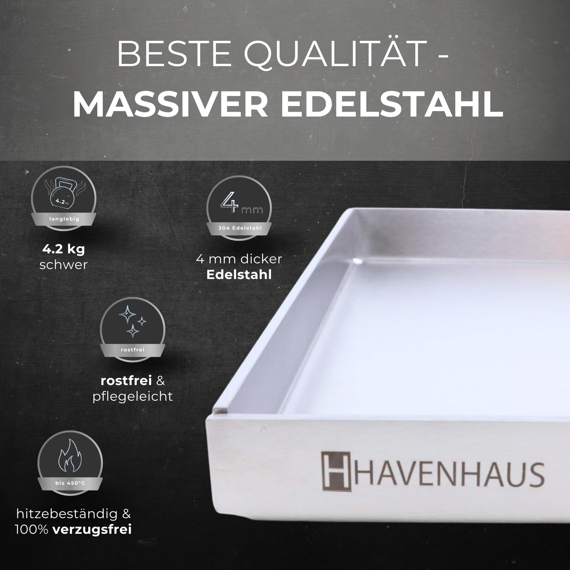 HAVENHAUS Massive Plancha Grillplatte – Edelstahl 40x30cm