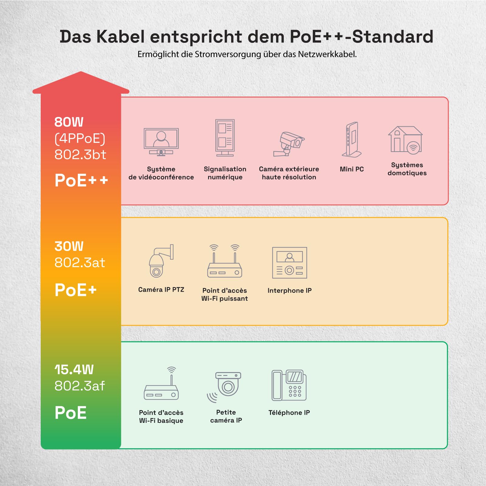 Kann ich mit diesem Kabel PoE-Geräte wie Überwachungskameras betreiben?