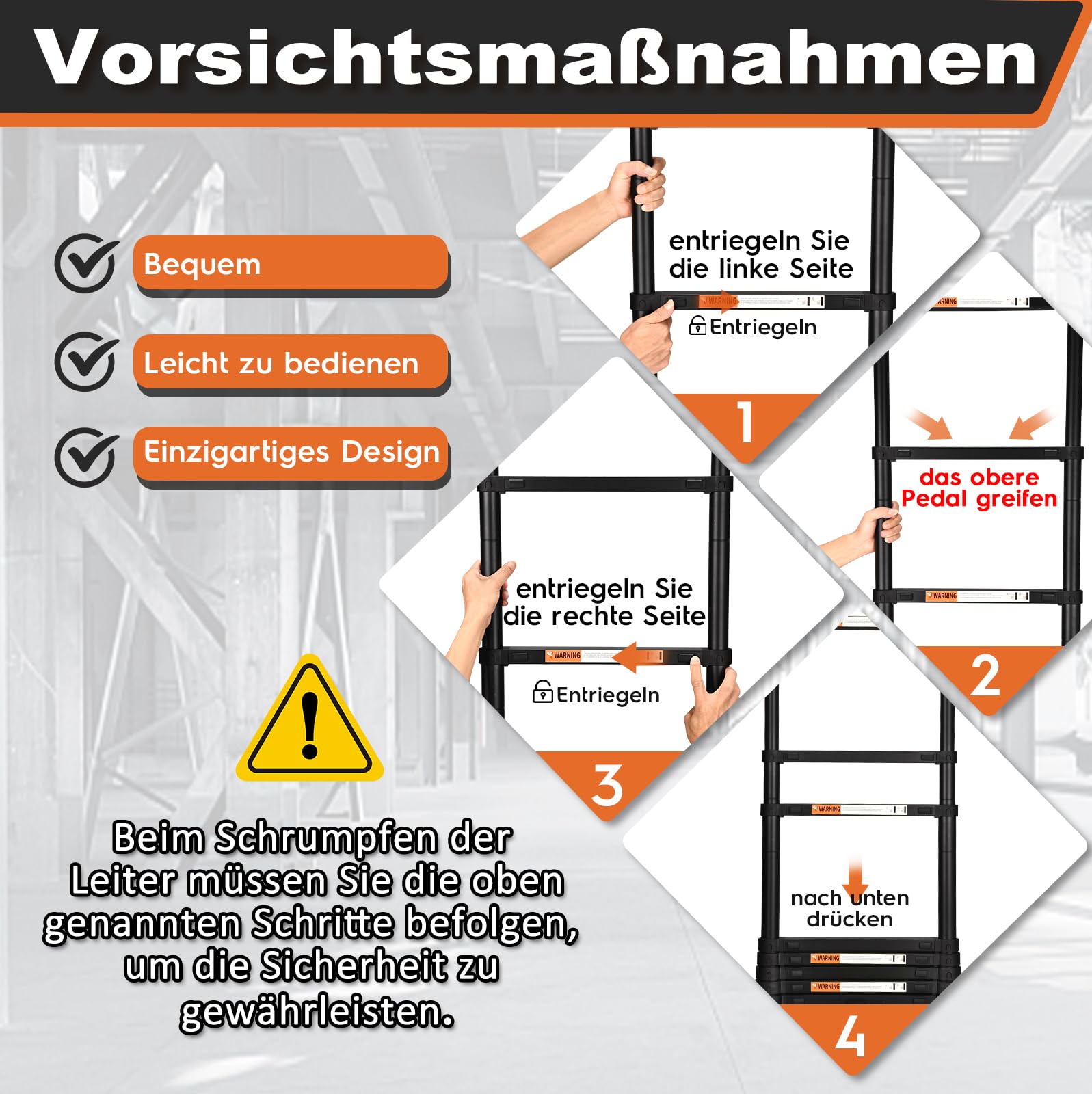 - Sicherer Stand: Ausgestattet mit rutschfesten Füssen und einer zuverlässigen Sicherheitsverriegelung für jede Stufe.