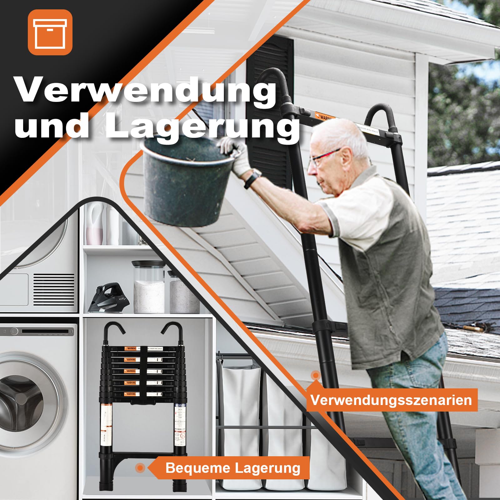 Sie ist ein flexibler Helfer für Hausbesitzer, Handwerker und Camper. Ideal für Aufgaben wie Glühbirnen wechseln, den Estrich oder Dachboden erreichen, den Wohnwagen reinigen oder kleinere Reparaturen am Haus. Ihre Anpassungsfähigkeit macht sie für fast jeden Einsatz in der Höhe geeignet.