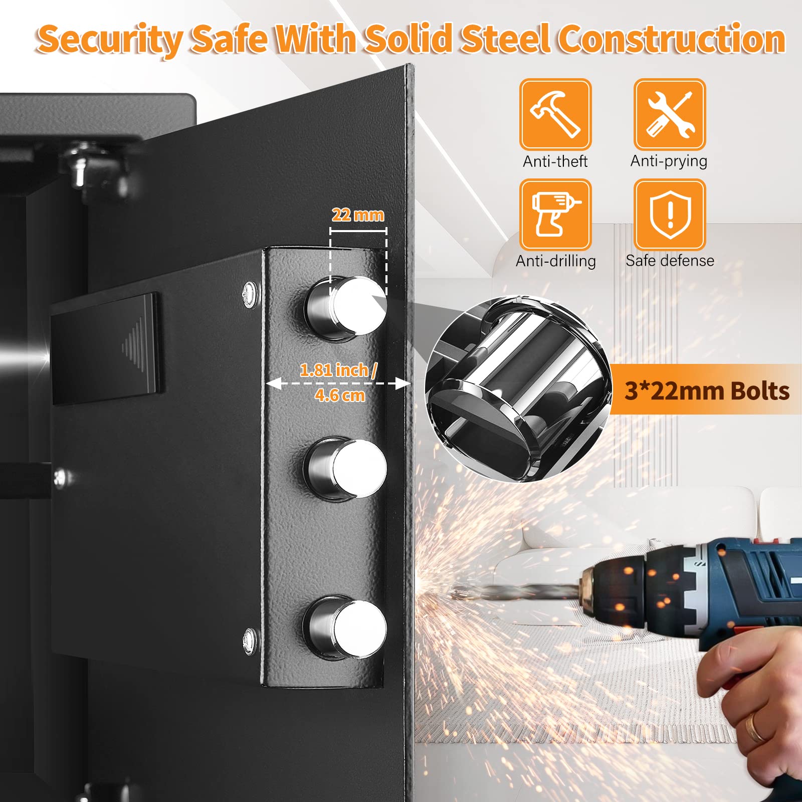 - Material & Konstruktion: Gefertigt aus widerstandsfähigem, kaltgewalztem Stahl mit einer 46 mm dicken Tür und drei soliden 22 mm Verriegelungsbolzen.