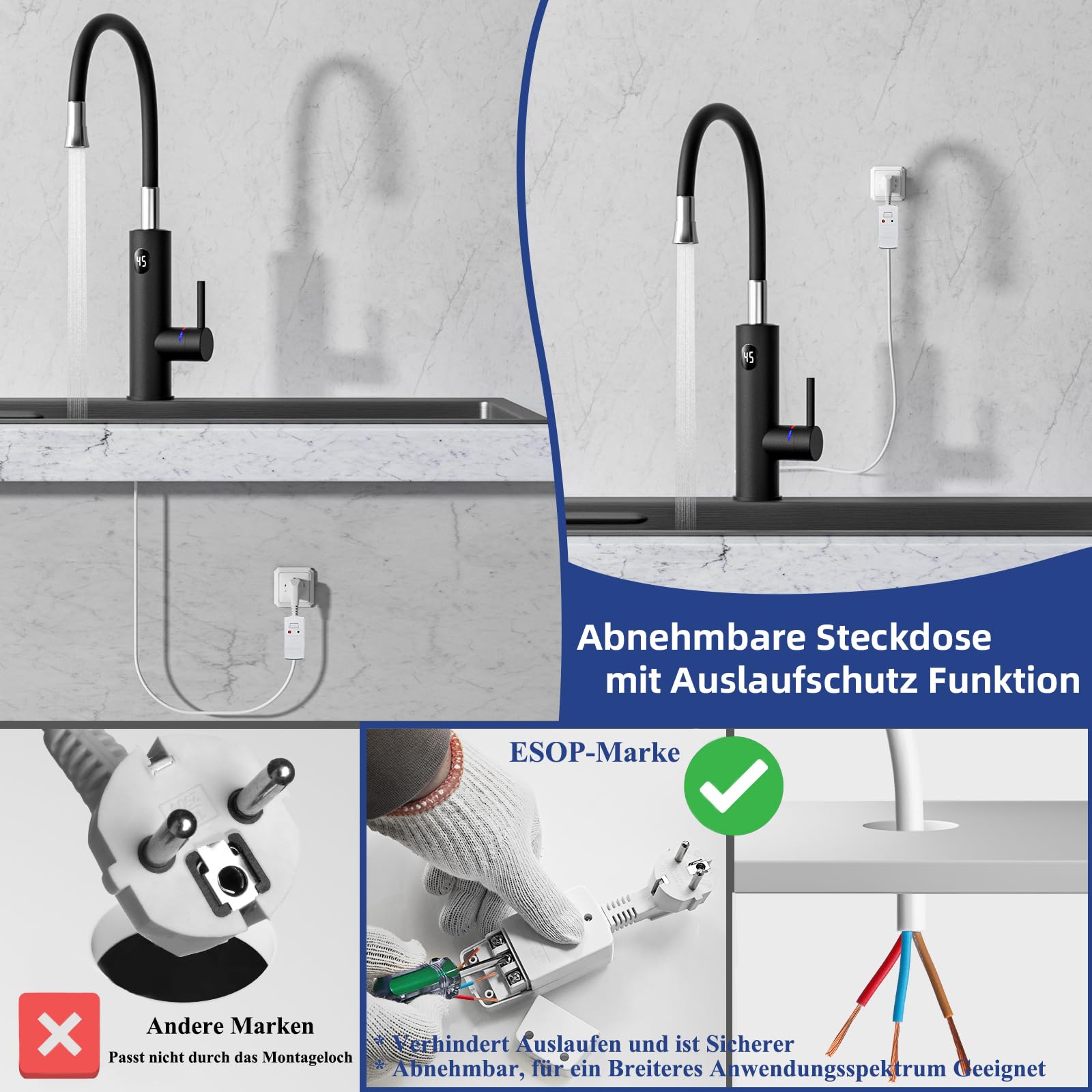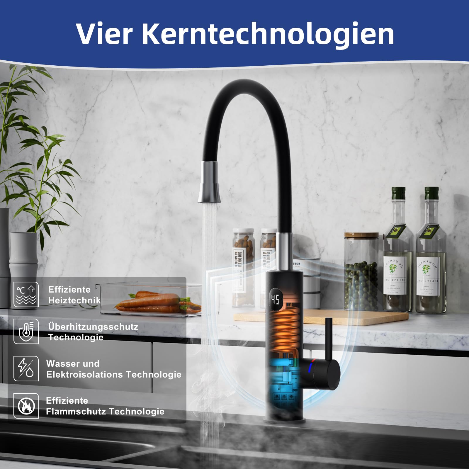 Elektrische Küchenarmatur Durchlauferhitzer – Sofort Heiss Schwarz