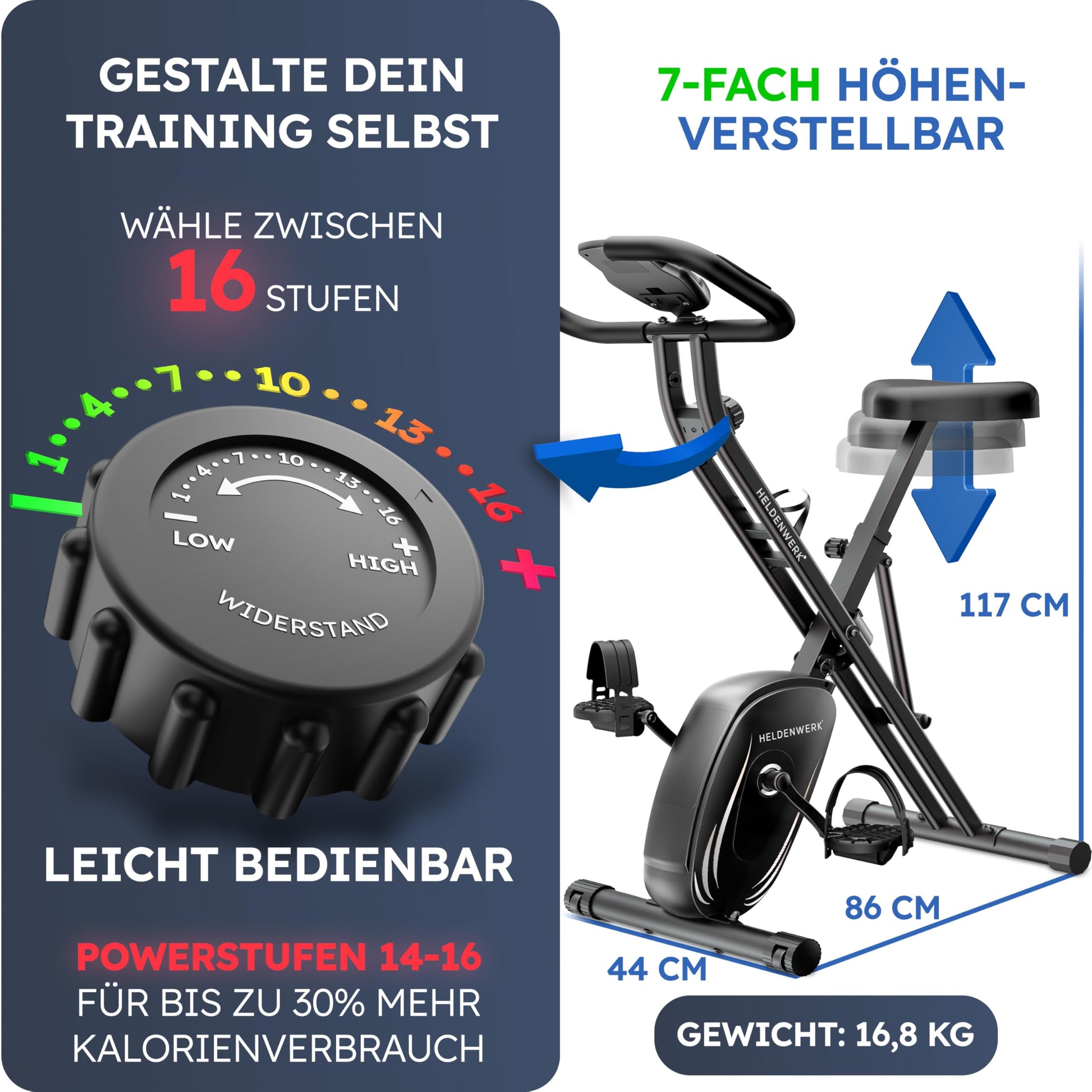 HELDENWERK Heimtrainer klappbar FlexiFoam Ergometer 150kg