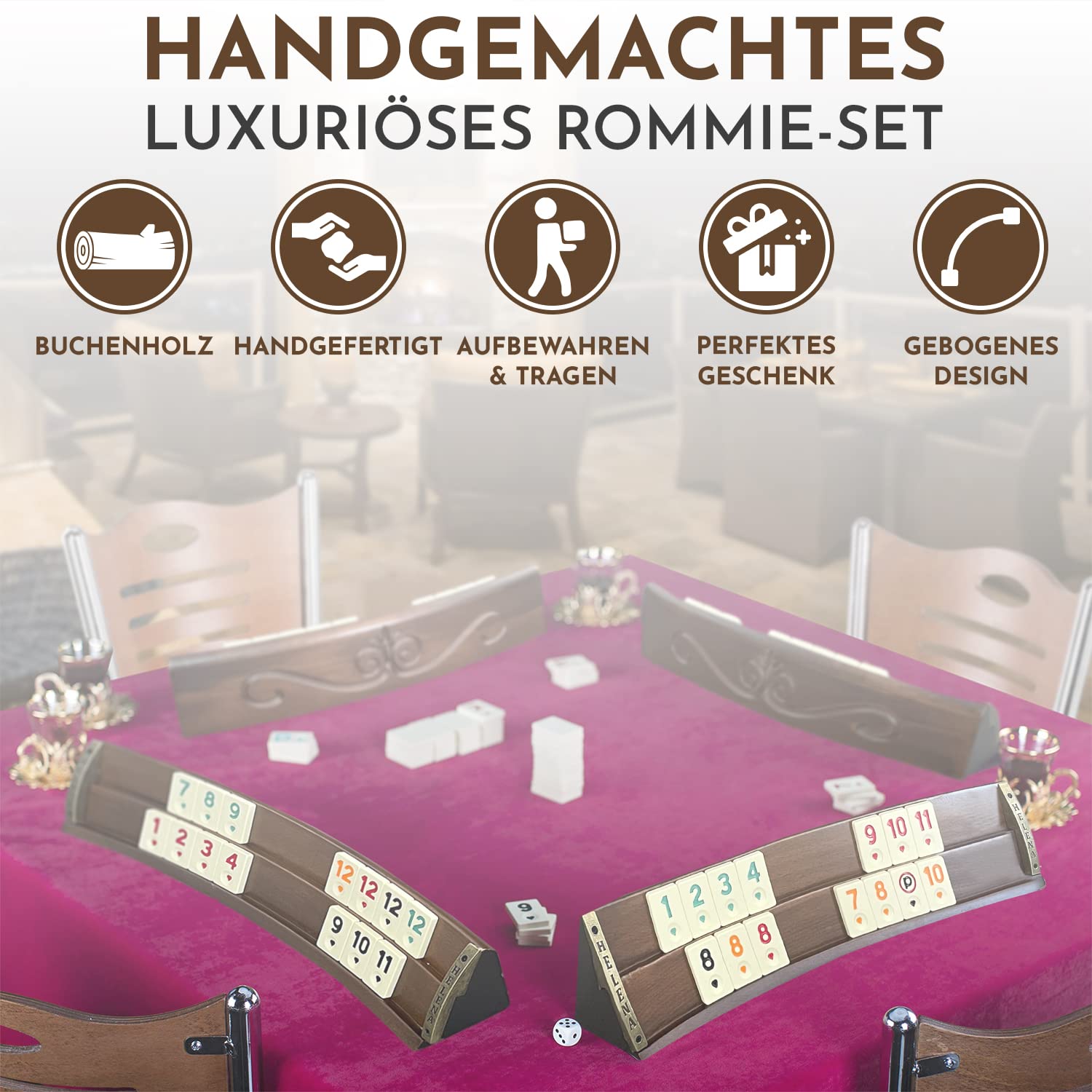 Dieses Set wurde für wahre Rummy-Fans entworfen, die Wert auf Qualität und Ästhetik legen. Die Kombination aus edlem Holz und hochwertigen Steinen macht jede Partie zu einem besonderen Erlebnis für Hände und Augen.