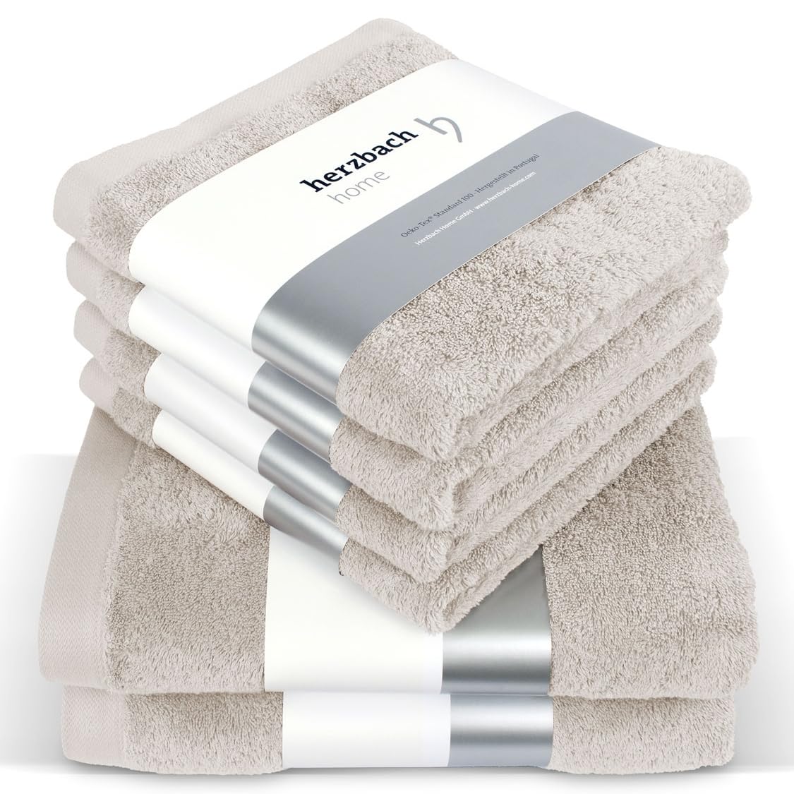 herzbach home Premium Handtücher-Set Baumwolle - Sandgrau