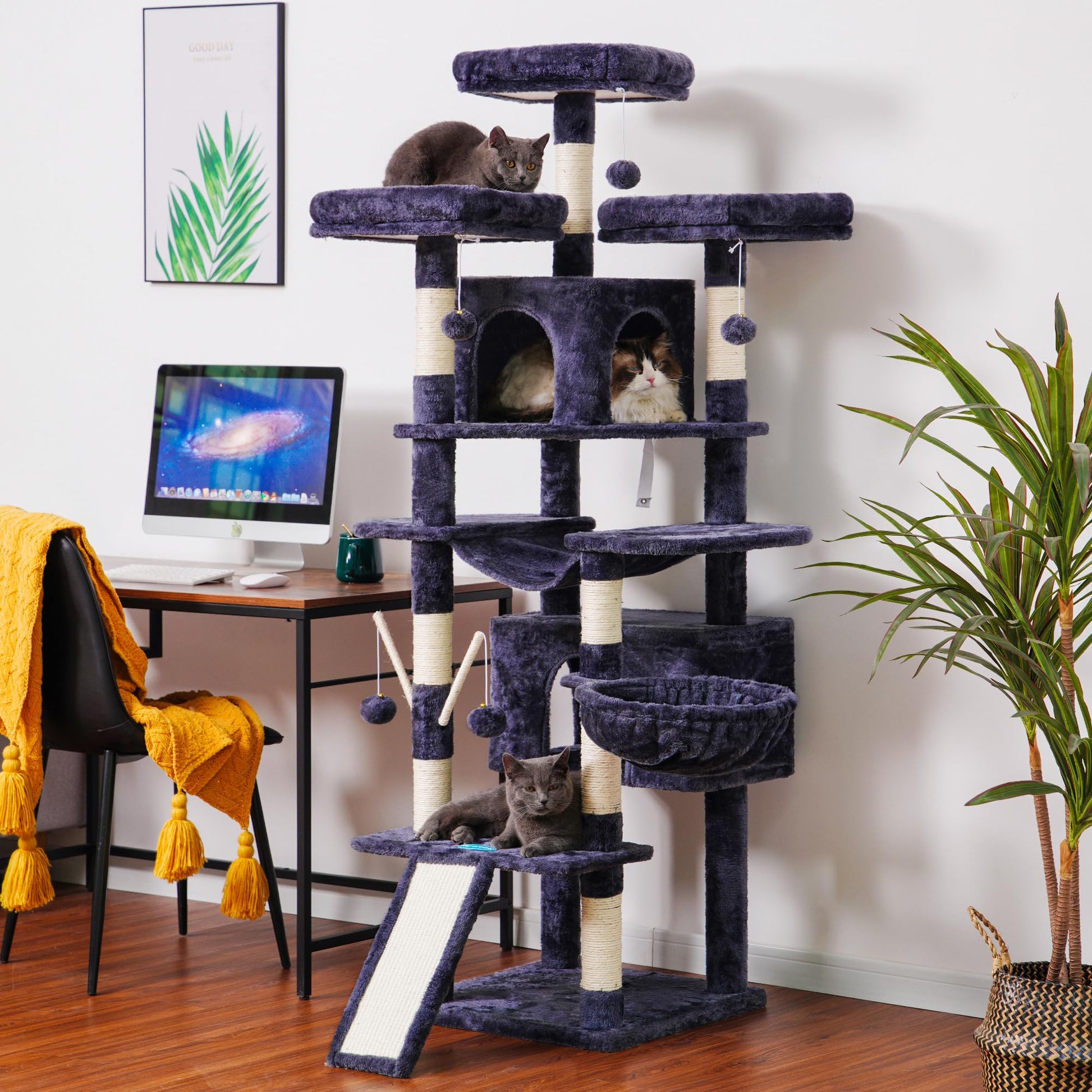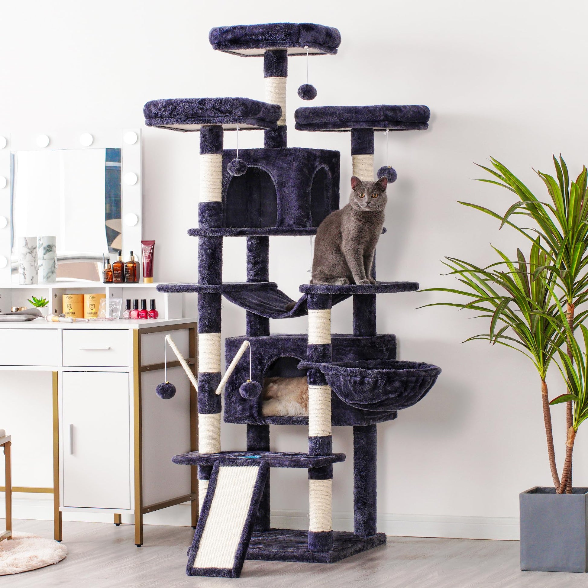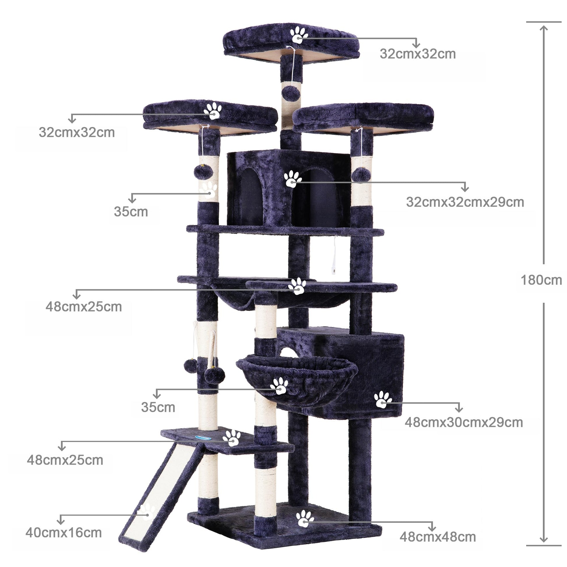 - Stattliche Höhe & einfacher Aufstieg: Mit einer Höhe von 180 cm erfüllt dieser Baum den Wunsch Ihrer Katze nach erhöhten Aussichtspunkten. Die intelligente Anordnung der Ebenen ermöglicht auch kleineren oder älteren Katzen ein müheloses Erklimmen.