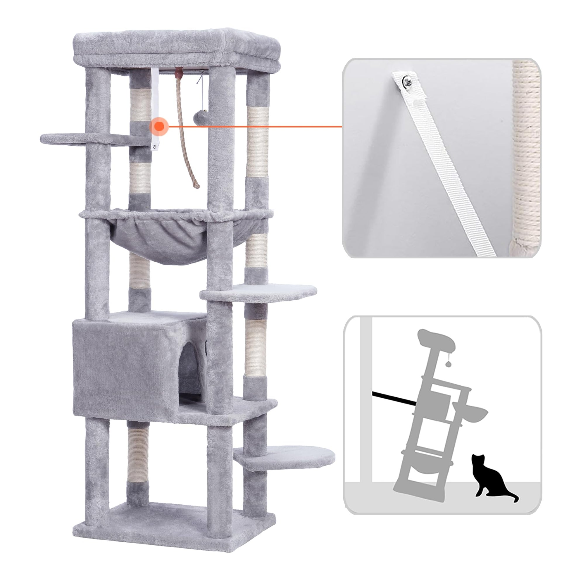 - Maximale Stabilität: Eine verstärkte Bodenplatte, robuste, mit Sisal umwickelte Stämme und eine mitgelieferte Kippsicherung gewährleisten jederzeit die Sicherheit Ihrer Katze, auch beim wilden Spielen.