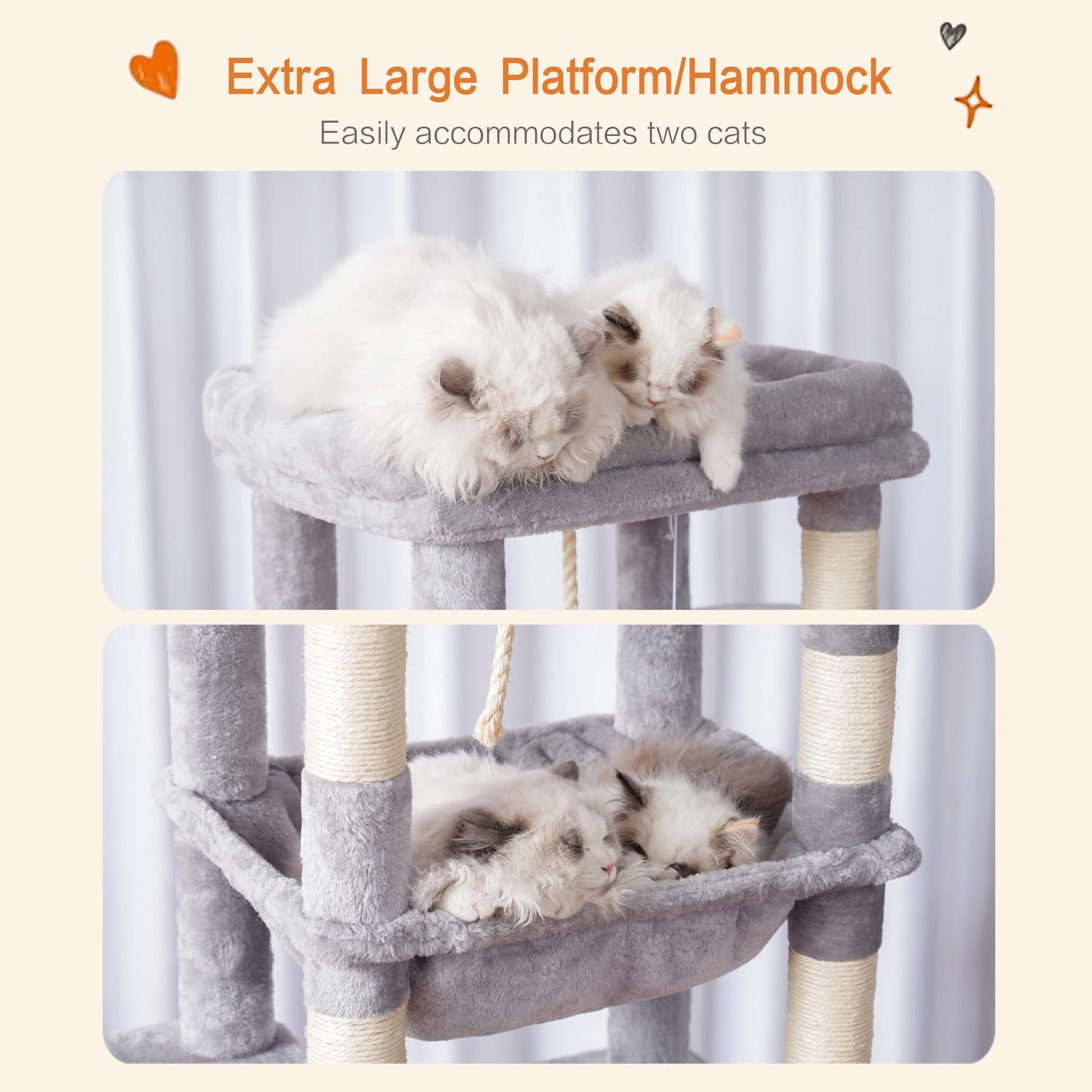 Dieser Kratzbaum von Heybly ist ein wahres Paradies für Ihre Katze und wurde speziell für die Bedürfnisse grosser oder mehrerer Samtpfoten konzipiert. Er bietet eine perfekte Kombination aus Spiel, Entspannung und Sicherheit auf mehreren Ebenen.