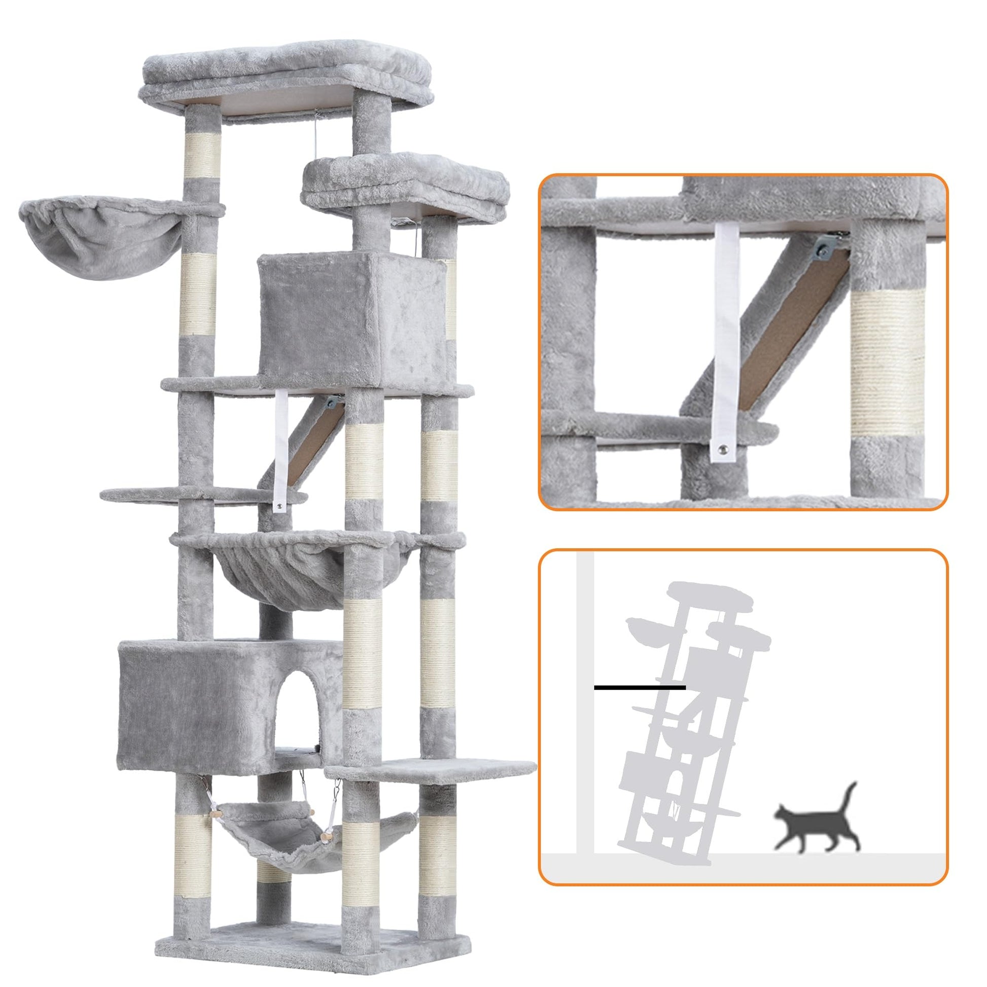 Heybly HCT034W Kratzbaum Katzenturm – 180 cm, Hellgrau