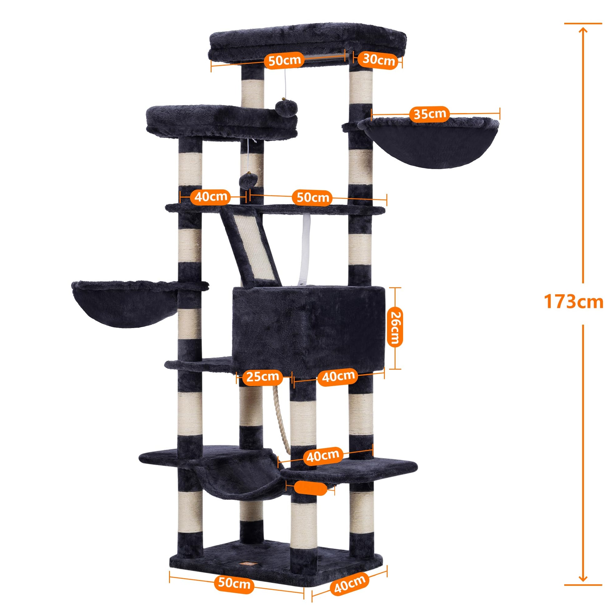 Heybly HCT025G Mehrstöckiger Katzenkratzbaum - 173cm Rauchgrau