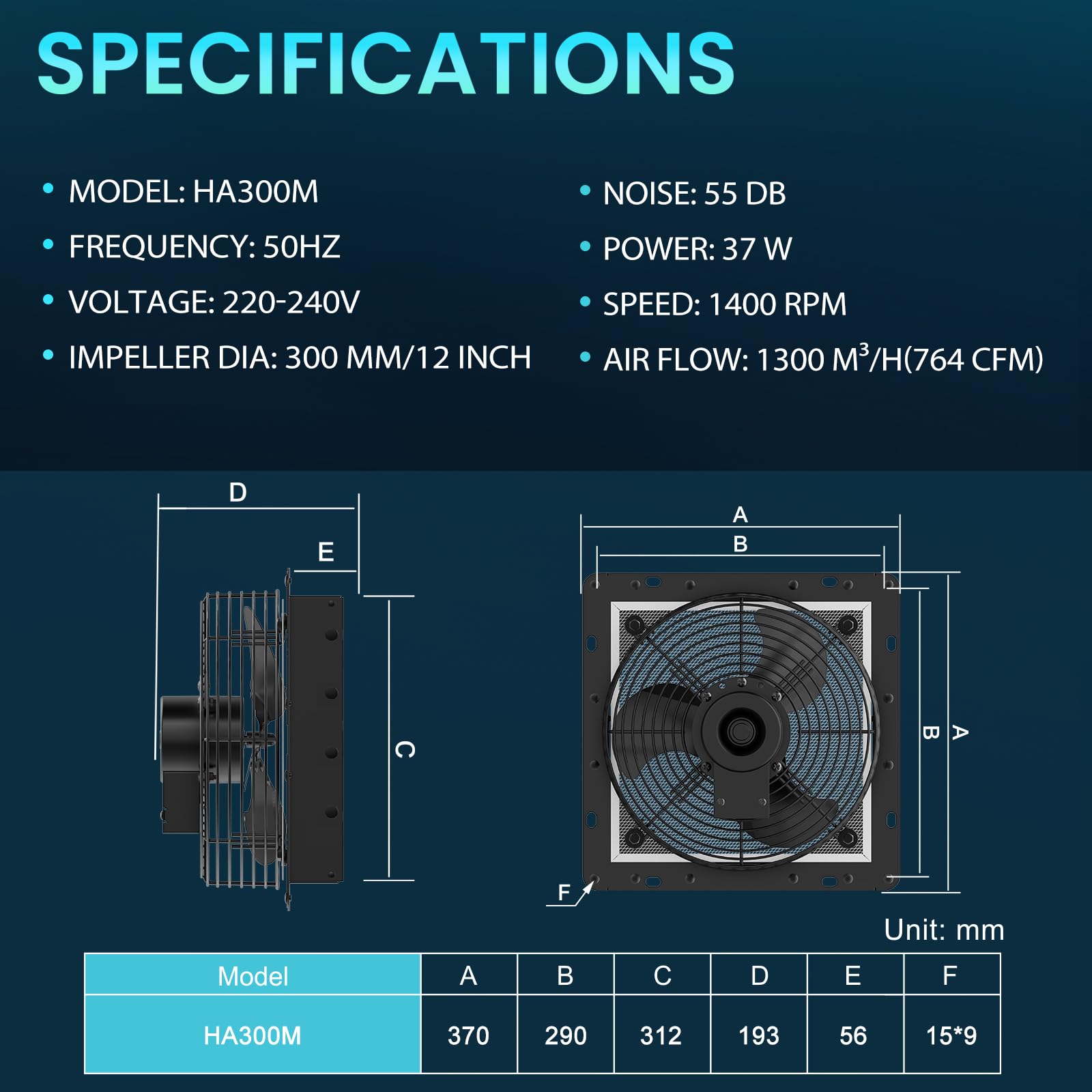 HG Power 300mm Abluftventilator Industrie-Wandlüfter – Regelbar