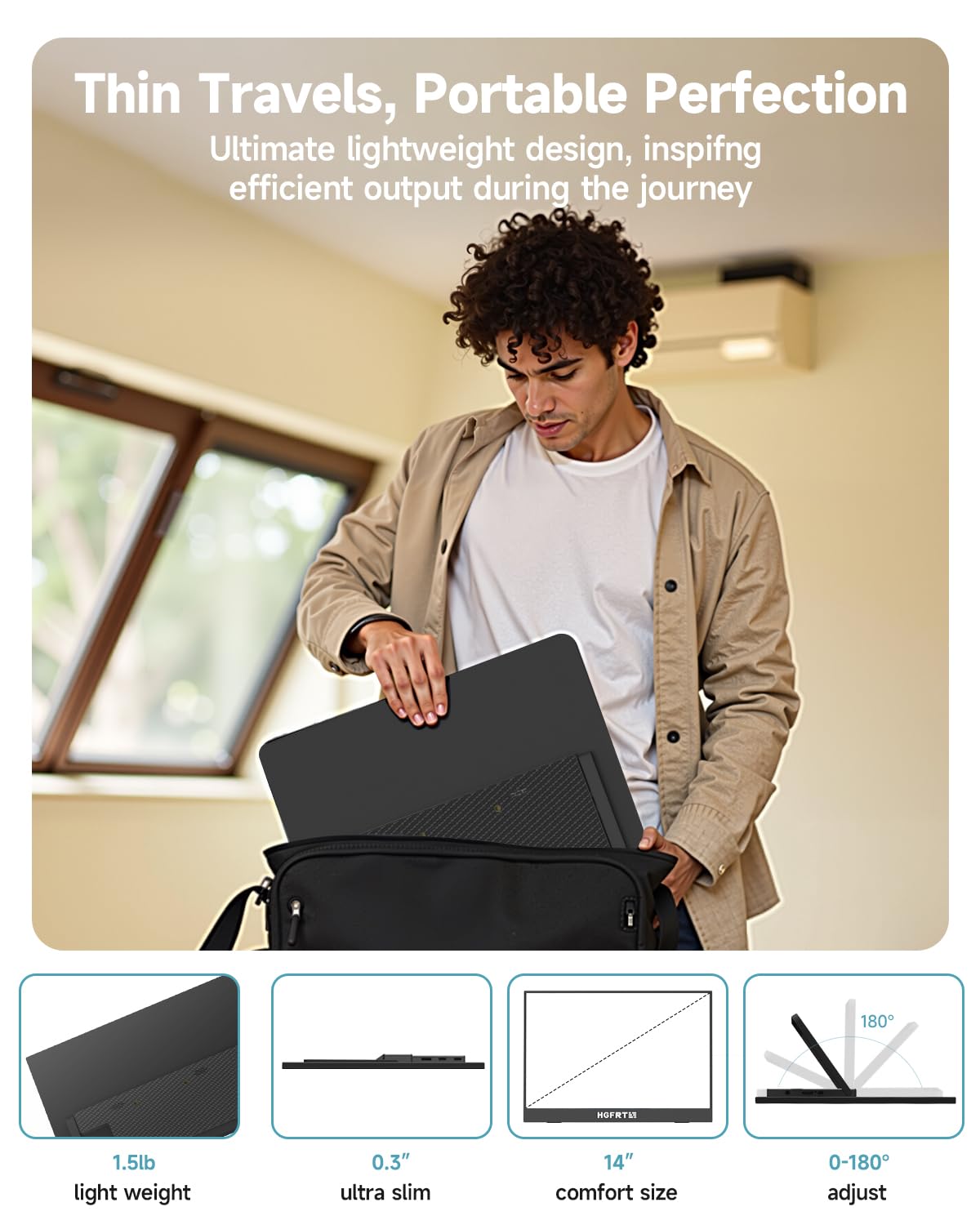 HGFRTEE 14 Zoll WUXGA Tragbarer Monitor IPS Touchscreen