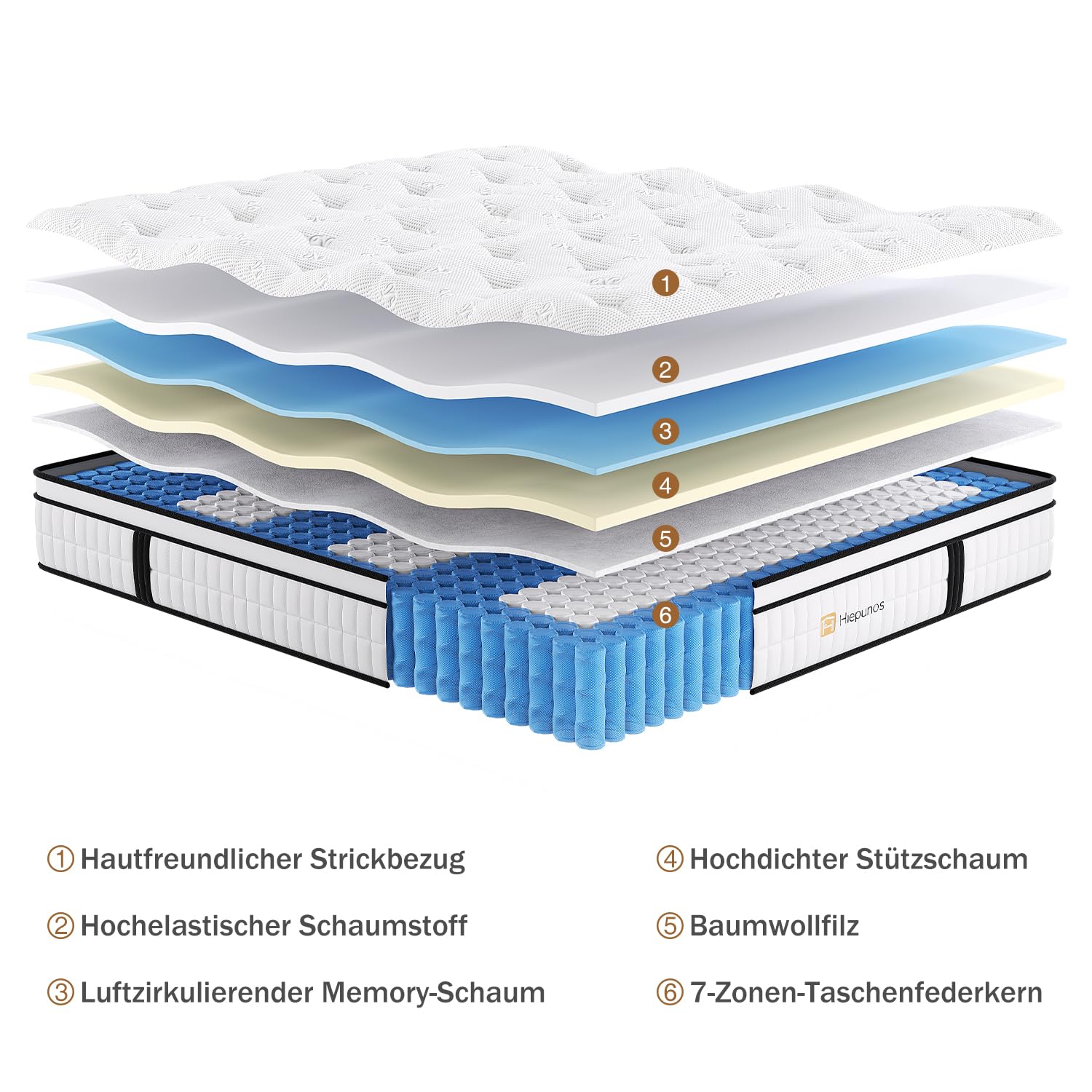 Hiepunos Taschenfederkernmatratze 160x200 H3 7 Zonen Memory
