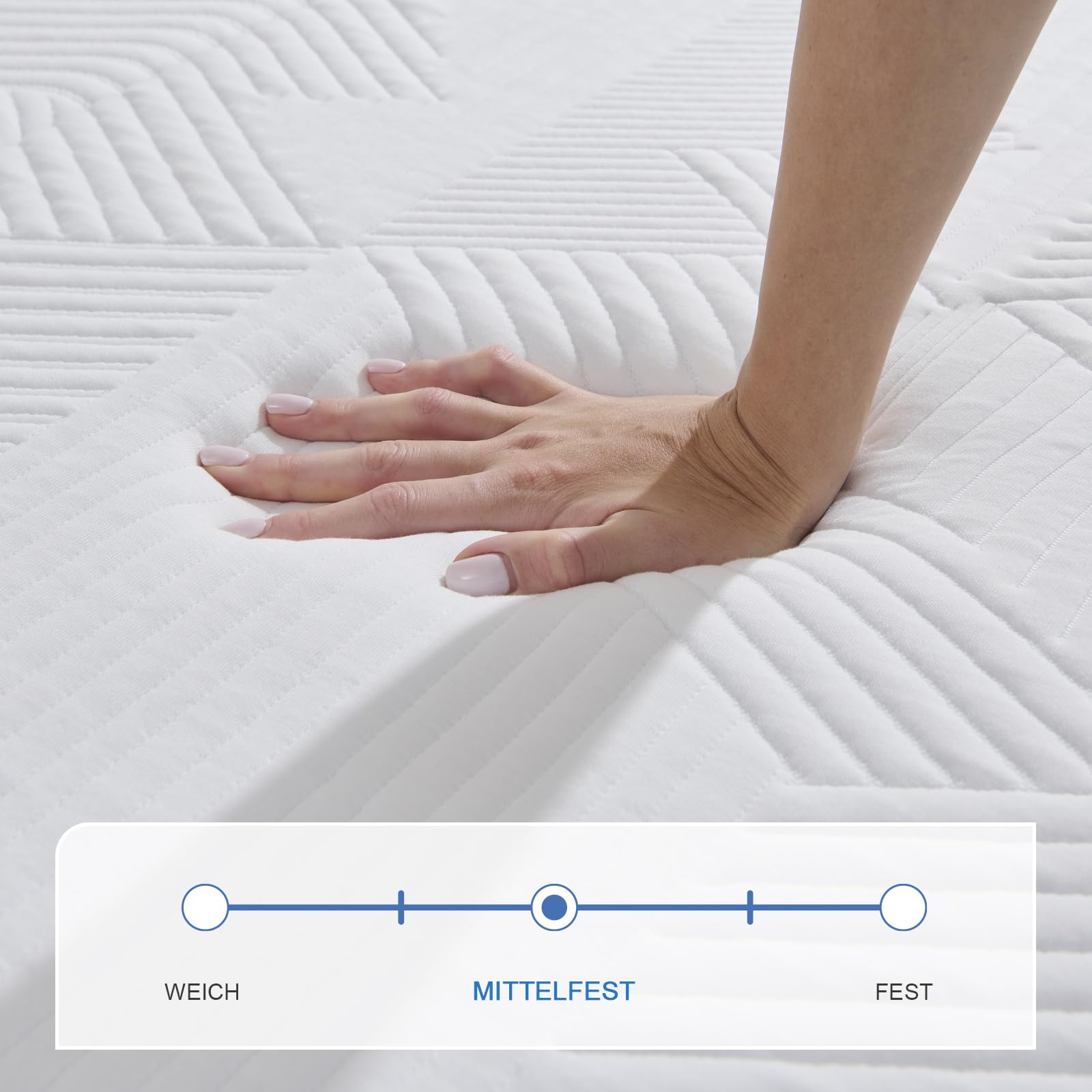Die Matratze besteht aus einem stützenden Schaumstoffkern, der für Komfort und Langlebigkeit sorgt. Der weiche, atmungsaktive Stoffbezug sorgt für ein angenehmes Hautgefühl und fördert ein gutes Schlafklima.