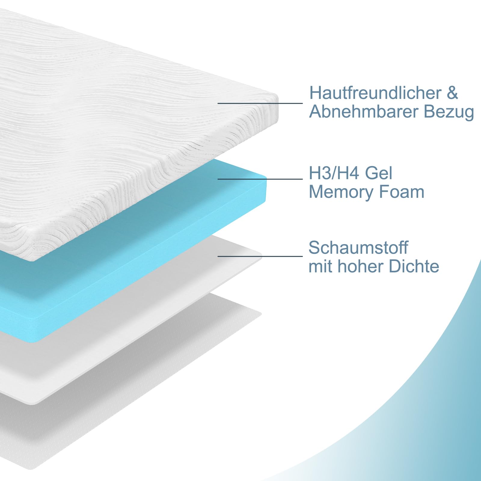 Hiimgo Gel Topper 140x200cm H3/H4 Kaltschaum Matratzentopper 7cm